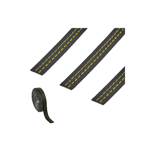 Oferă un aspect premium proiectelor tale cu această bandă autoadezivă imitație piele, în culoare negru, cu cusături decorative în mai multe variante. Este ușor de aplicat datorită benzii cu dublu adeziv și este potrivită pentru finisaje, reparații estetice și tuning interior auto.