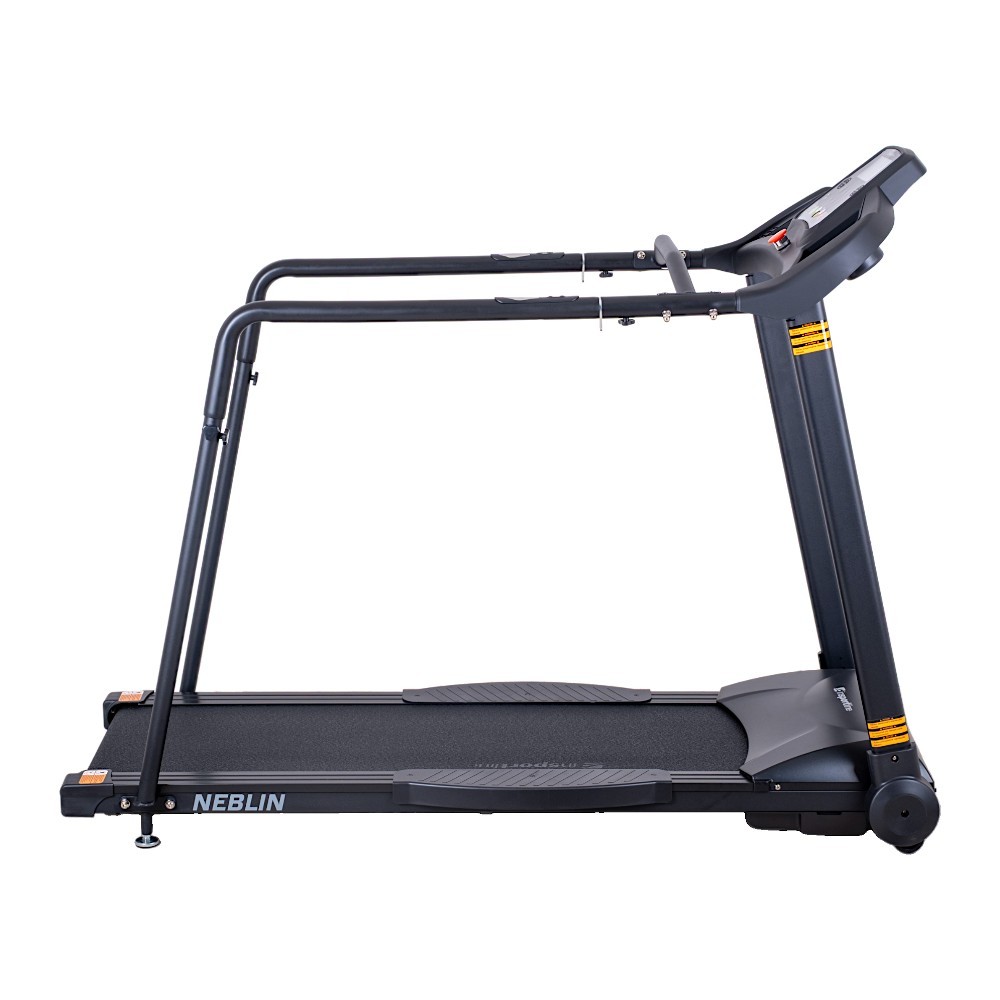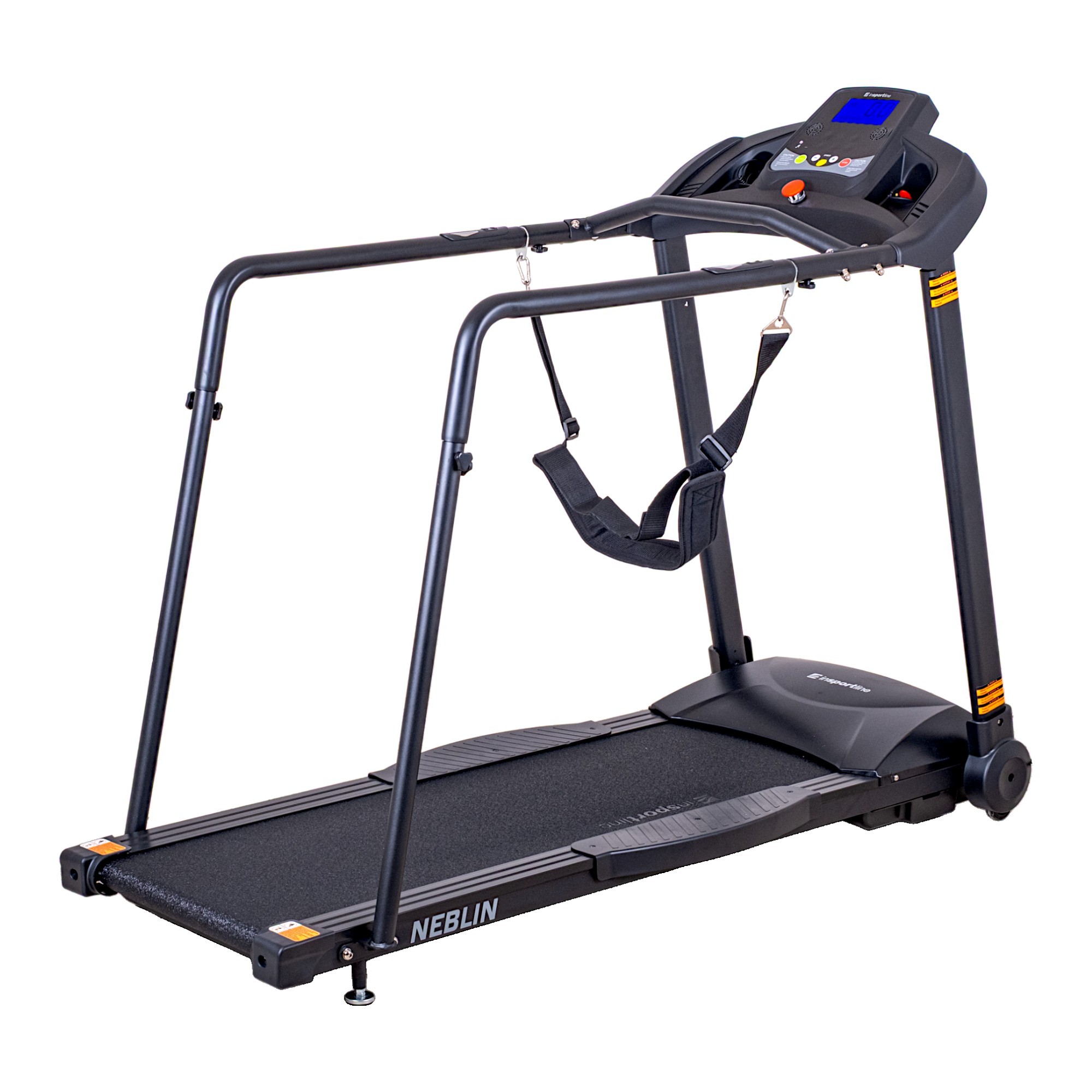 Banda de alergat inSPORTline Neblin este o banda de alergat speciala pentru uz casnic, potrivita in special pentru mersul pe jos si recuperare. Manerele laterale sunt acoperite cu un material moale servesc drept suport in timpul mersului, facand utilizatorul sa se simta mai sigur. Un alt maner este asezat orizontal in fata utilizatorului. Un alt avantaj al benzii de alergat inSPORTline Neblin este cureaua de siguranta detasabila, care ajuta utilizatorul sa mentina echilibrul. O siguranta mai buna este, de asemenea, asigurata de sinele laterale antiderapante mari - puteti sa coborati cu usurinta de pe suprafata de alergare cu ajutorul lor daca este necesar. Banda de alergat are un buton mare de siguranta care o va opri imediat daca este necesar. Banda de alergat este, de asemenea, echipata cu afisaj LCD usor de citit, care va va arata toate informatiile de care aveti nevoie. Rotile de transport incorporate va vor ajuta sa mutati banda de alergat fara prea mult efort. Datorita acestor caracteristici, banda de alergat inSPORTline Neblin este potrivita pentru persoanele in varsta care cauta o modalitate sigura de a se deplasa in mod activ, pentru cei care sunt supusi recuperarii dupa o accidentare sau pentru persoanele cu convalescenta cu mobilitate limitata.