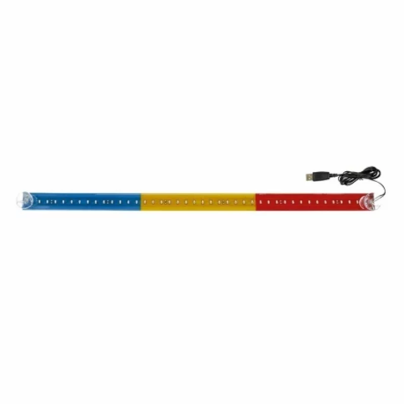 Adaugă un plus de stil și vizibilitate în habitaclul mașinii cu această bandă LED auto de 60 cm, decorată în culorile steagului României. Este o soluție practică și atractivă pentru cei care își doresc un accesoriu luminos ușor de montat, cu alimentare USB și consum redus. Se fixează simplu pe parbriz, în interior, cu ajutorul ventuzelor incluse.