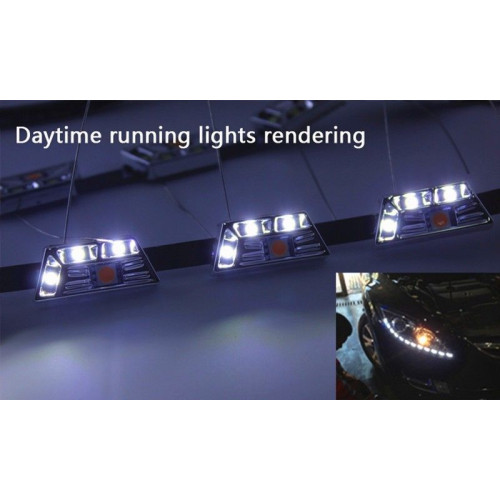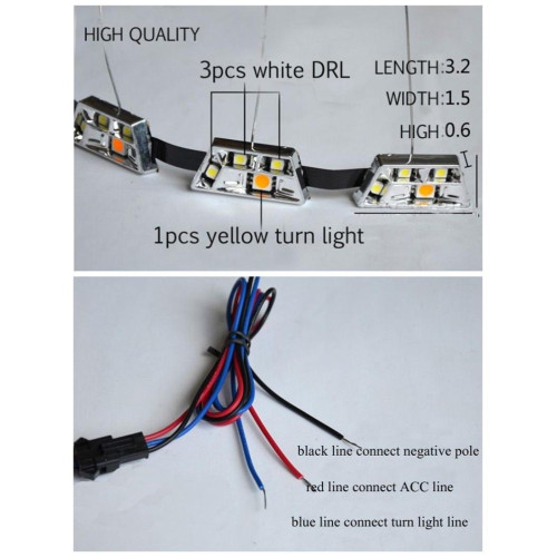 Se aprinde alb pentru DRL/pozitie si galben pentru semnalizare.