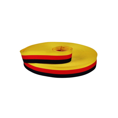 Bandă pentru centură de siguranță auto din poliester, 46 mm, rolă 100 m (negru/roșu/galben)