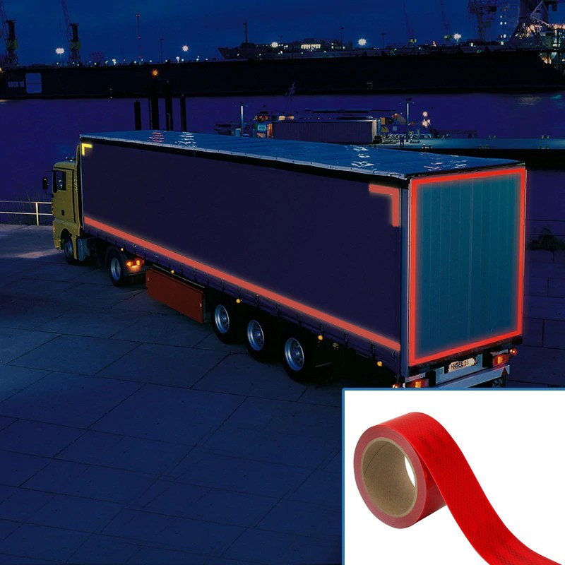 Banda este reflectorizanta sporind astfel vizibilitatea pe timp de noapte fiind potrivita pentru vehicule cu gabarit depasit. Aceasta este rezistenta la apa lipirea fiind de lunga durata. Banda are lungimea de 1 metru si latimea de 5 cm.