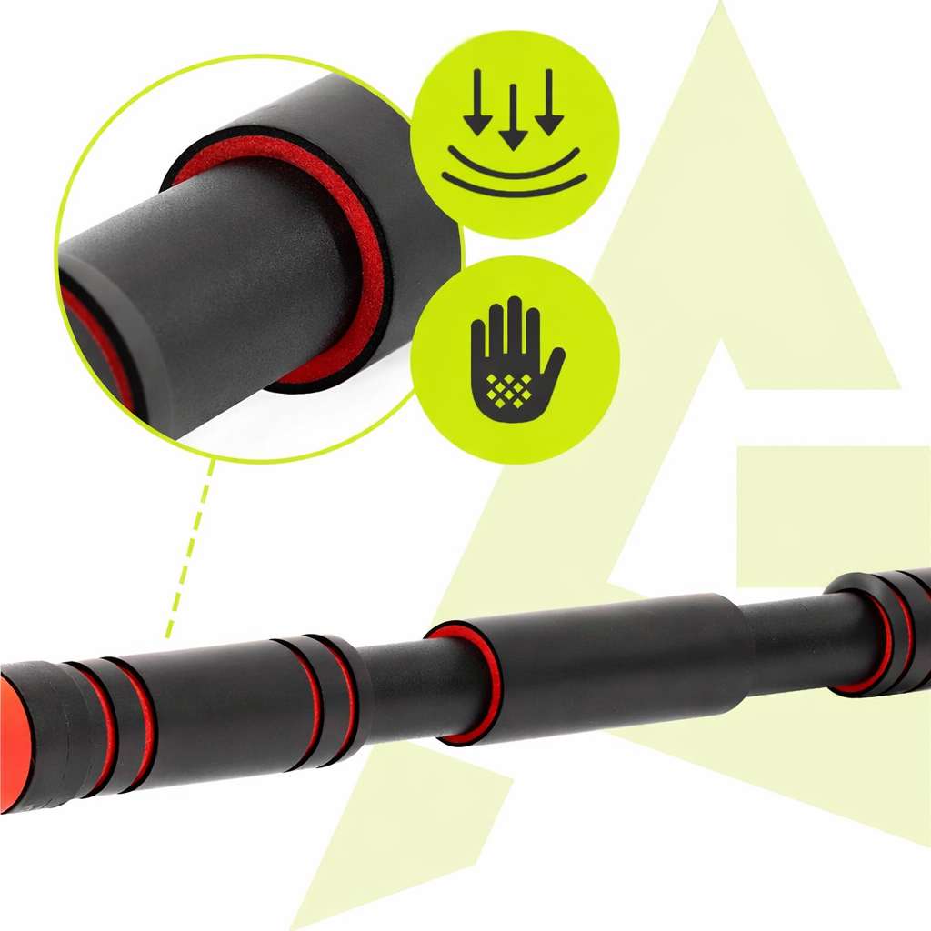 Alege această bară de tracțiuni pentru ușă dacă vrei să te antrenezi eficient acasă, fără aparate voluminoase. Construită din oțel rezistent și prevăzută cu mânere antiderapante din spumă NBR, bara oferă o prindere confortabilă și stabilă pentru exerciții de forță, tonifiere și dezvoltare musculară.