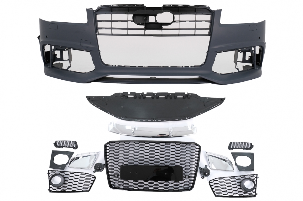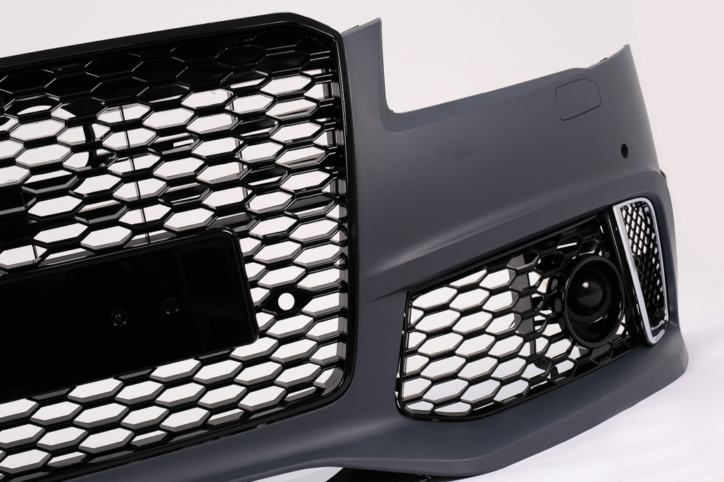Bara fata Bara este echipata cu grila centrala cu finisaj negru lucios, grilele laterale cu finisaj negru lucios, capacul de remorcare, capacelele pentru sistemul de spalare a farurilor si orificiile pentru senzorii de parcare (PDC). Fabricata din polipropilena de cea mai buna calitate si este pregatita pentru procesul de vopsire