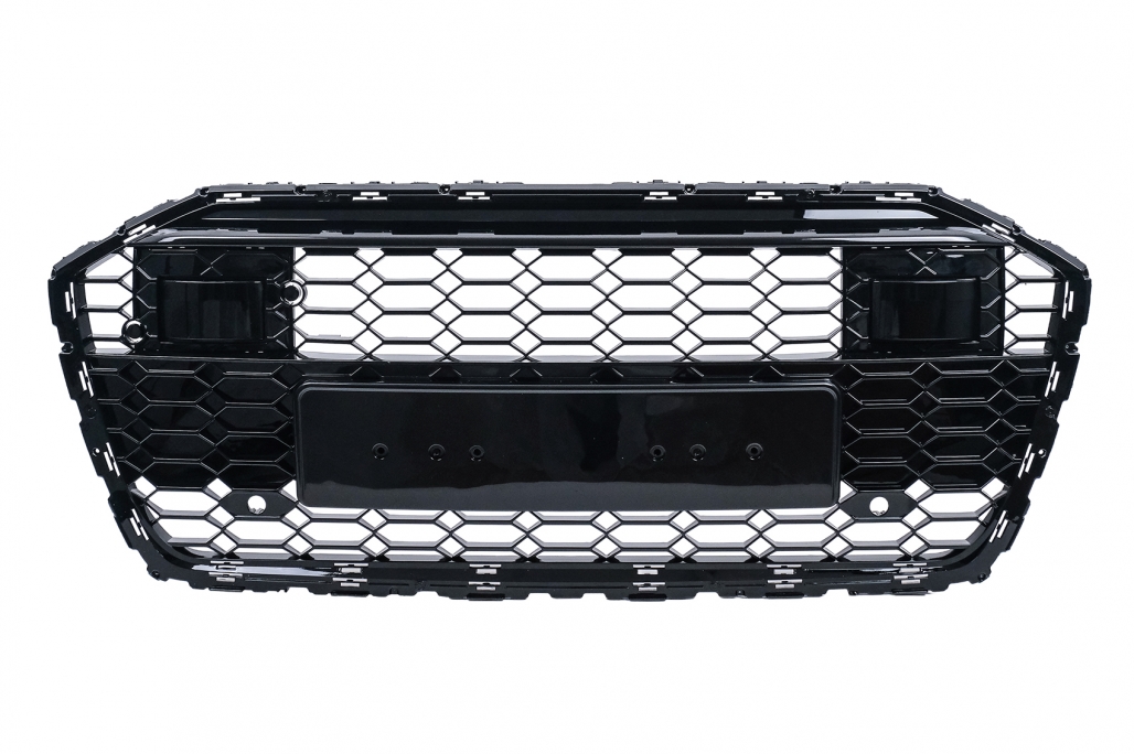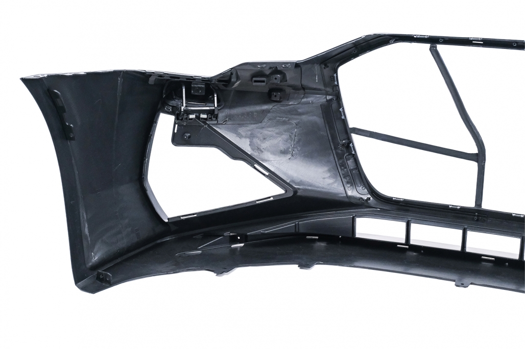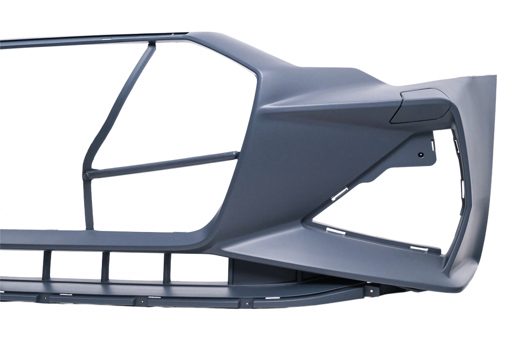 Bara fata este fabricata din plastic polipropilena ce cea mai buna calitate. Bara fata RS6 look echipata cu grilele laterale si grila centrala cu finisaj negru lucios, capacele pentru carligul de remorcare si capacele pentru sistemul de spalare al farurilor.