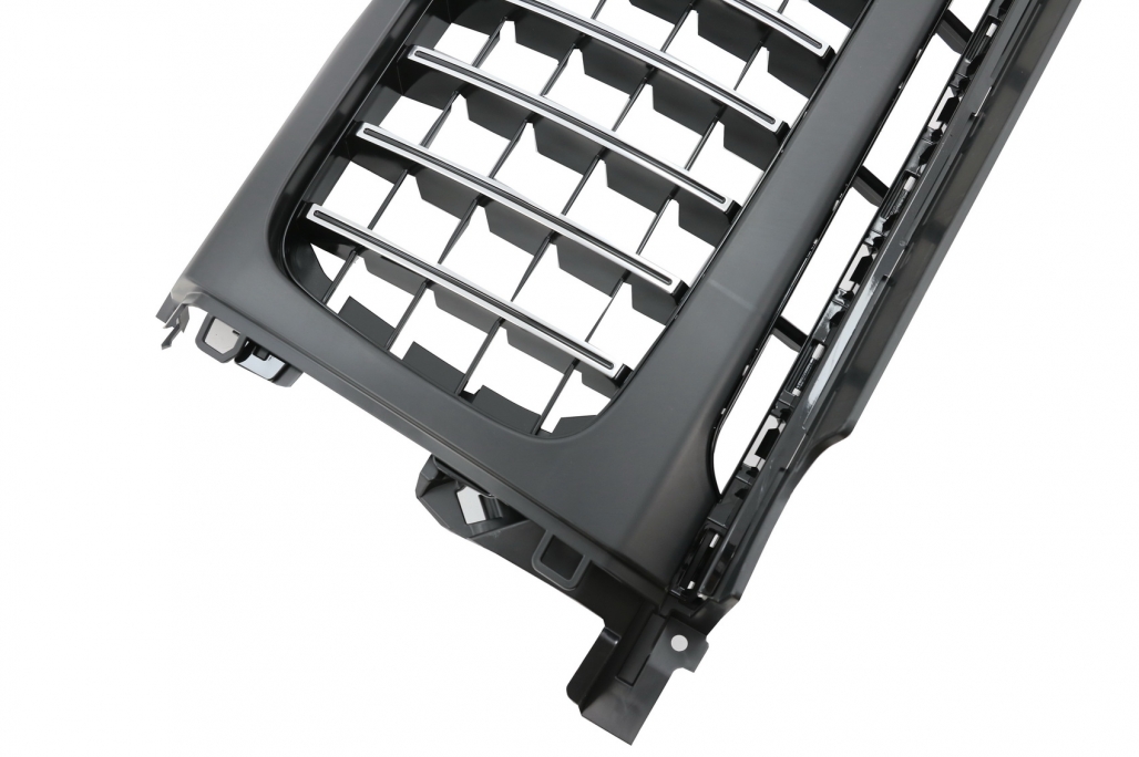 Bara Fata echipata cu ranforsare metalica, grila centrala cu suport pentru Distronic, grile laterale, ornamente aluminiu si suportul numarului de inmatriculare. Grila centrala Grila este fabricata din plastic de cea mai buna calitate Finisaj: Negru Lucios Prelungiri aripi Prelungirile sunt fabricate din Polipropilena flexibila de cea mai buna calitate. Extensiile nu sunt vopsite.