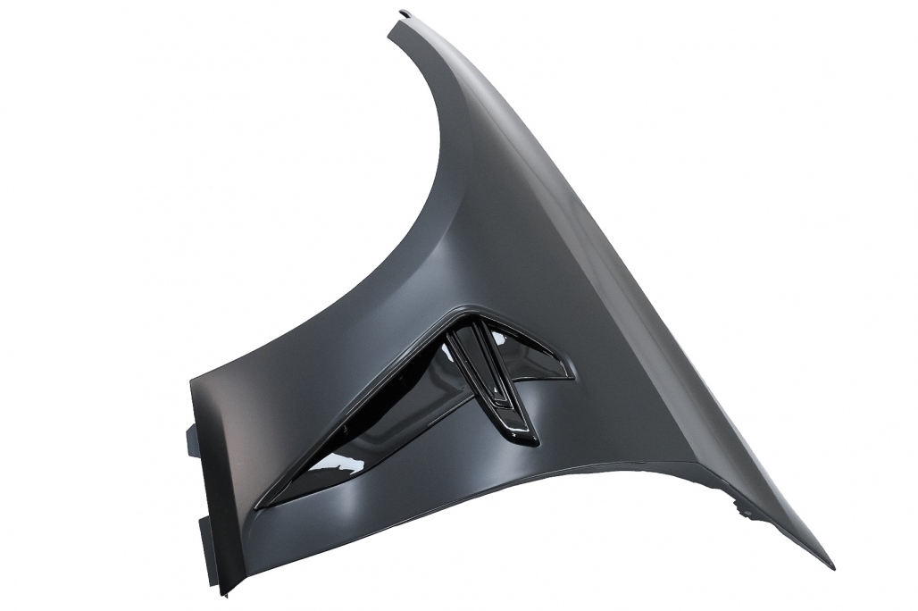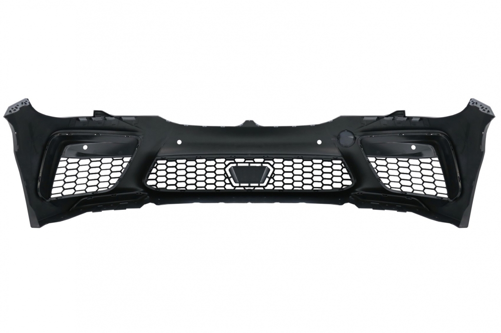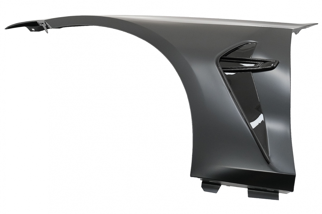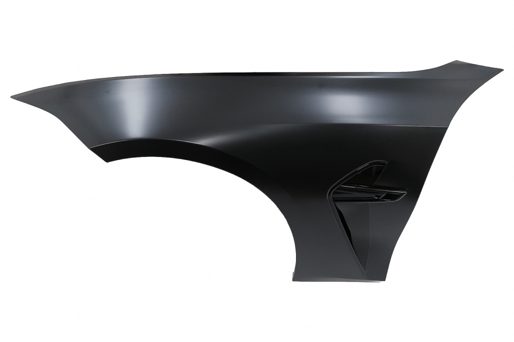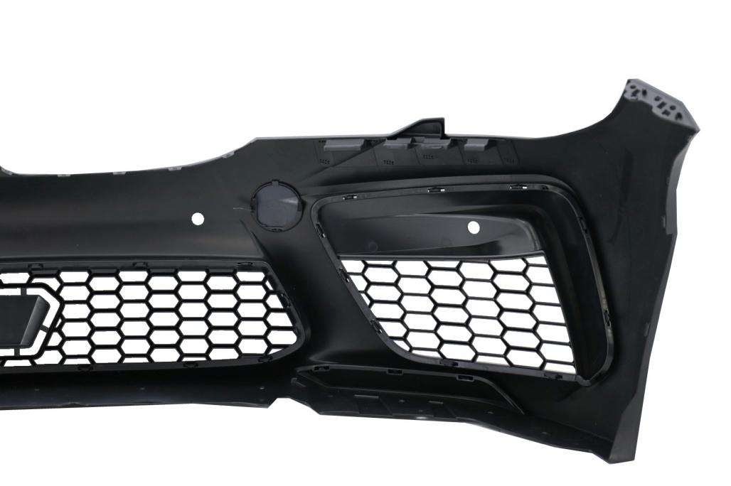 Bara fata este echipata cu grila centrala, grilele laterale, capacul de remorcare si deschiderea pentru distronic din grila centrala si sunt vopsite in culoarea negru lucios. Bara nu este echipata cu capacelele pentru sistemul de spalare a farurilor. Fabricata din polipropilena de cea mai buna calitate si este pregatita pentru procesul de vopsire. Aripi Laterale Negru M8 Design Aripile sunt fabricate din otel de cea mai buna calitate. Aripi Laterale ehipate cu sistem de ventilare. Emblema nu este inclusa.