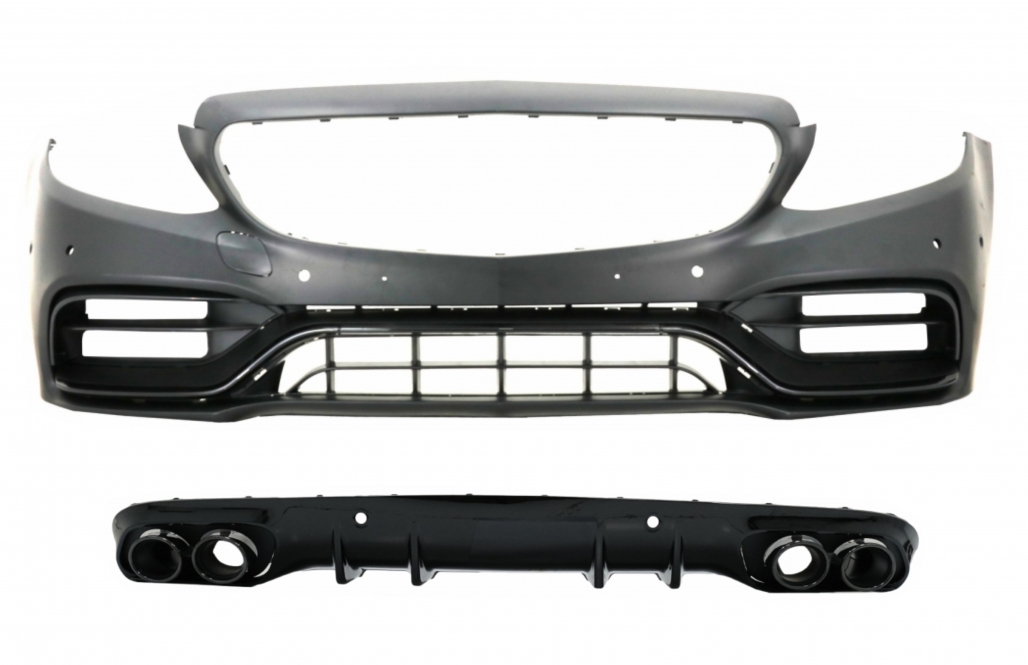 Bara Fata cu Difuzor Spate si ornamente evacuare compatibil cu Mercedes C-Class A205 C205 Coupe Cabriolet (2014-2019) C63 Design Negru Lucios