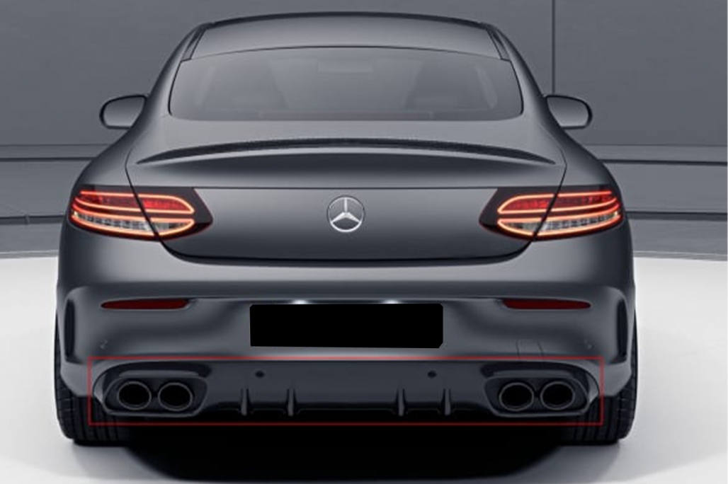 Bara Fata cu Difuzor Spate si ornamente evacuare Mercedes C-Class A205 C205 Coupe Cabriolet (2014-2019) C63 Design Negru Lucios Performance AutoTuning
