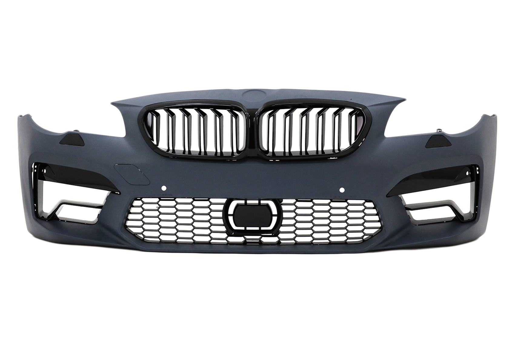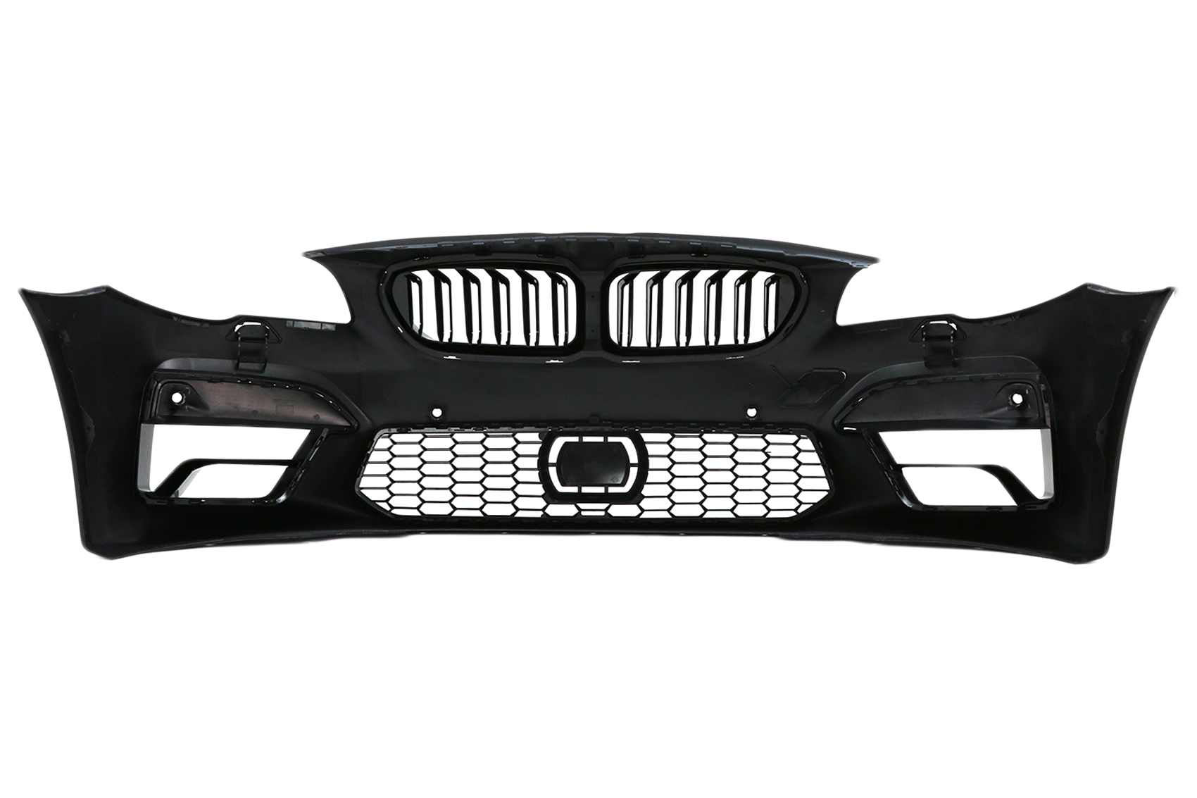 Bara fata M5 2020 Design Bara este fabricata din PP (polipropilena) Bara fata este echipata cu grila centrala, grilele laterale, capacul de remorcare, Orificii pentru senzorii de parcare si capace pentru spalatoarele farurilor. Furnizam si anulatoarele pentru proiectoarele de ceata. Grila centrala Grila este fabricata din plastic de cea mai buna calitate Finisaj: Negru Lucios