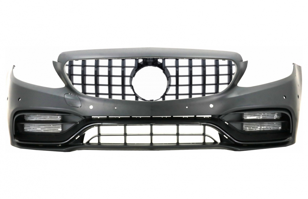 Bara Fata C63 Design echipata cu: Grila Central-Inferioara Grile Laterale Suporti pentru PDC (senzori de parcare) Ornamente Negru Lucios Bara este fabricata din polipropilena de cea mai buna calitate si este pregatita pentru procesul de vopsire. Grila Centrala Panamericana GT-R Design Grila este fabricata din plastic ABS de cea mai buna calitate 360 Camera: Suport pentru camera sau Dummy camera