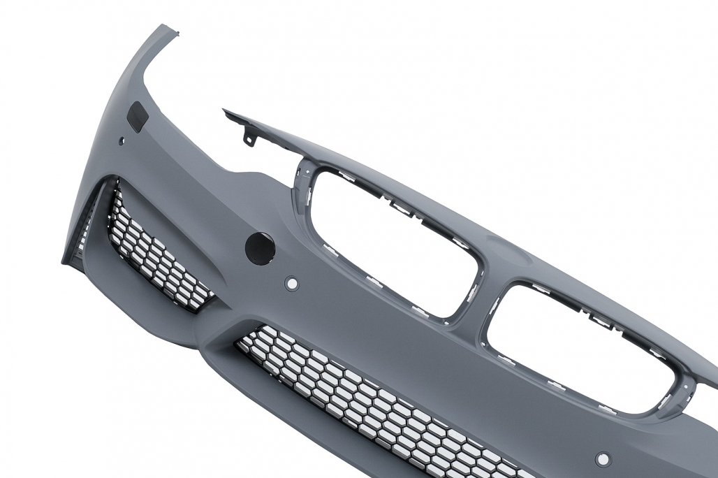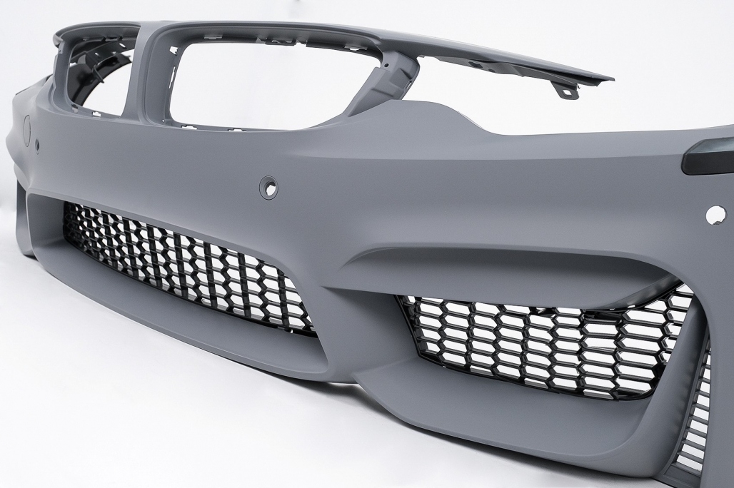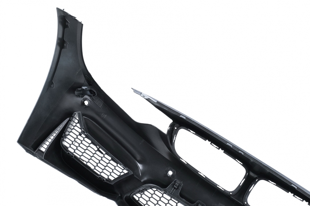 Bara fata fabricata din polipropilena de cea mai buna calitate. Bara fata echipata cu grila central inferioara, grile laterale Bara fata necesita vopsire. Grilele sunt fabricate din plastic de cea mai buna calitate. Design: M Power Culoare: Negru Finisaj: Lucios