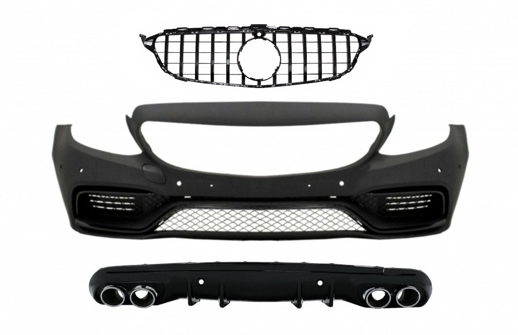 Ofera masinii tale un aspect sportiv si modern cu acest kit bara fata Mercedes C-Class W205 in stil C63 Design, conceput pentru modelele W205 si S205 fabricate intre 2014 si 2018. Pachetul include grila centrala Panamericana, grile laterale, difuzor spate si ornamente pentru evacuare, pentru un upgrade vizual complet si elegant.