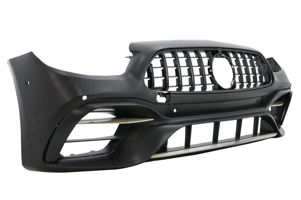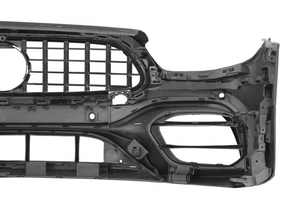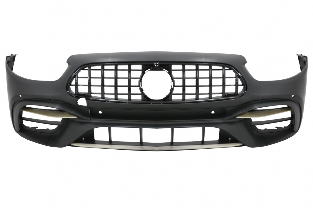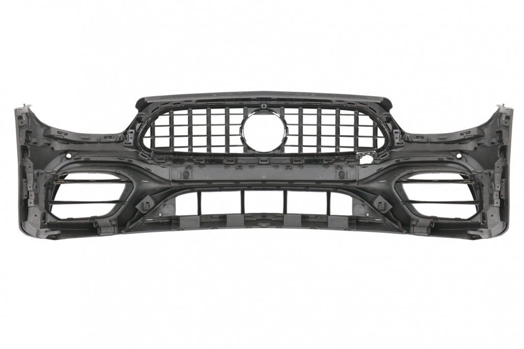 Bara Fata echipata cu Grila centrala, grila central-inferioara, grile laterale, suporti pentru camera, suporti pentru senzorii de parcare (PDC) si capacul carligului de remorcare. Bara este fabricata din plastic PP (polipropilena) de cea mai buna calitate, este pregatita pentru procesul de vopsire.