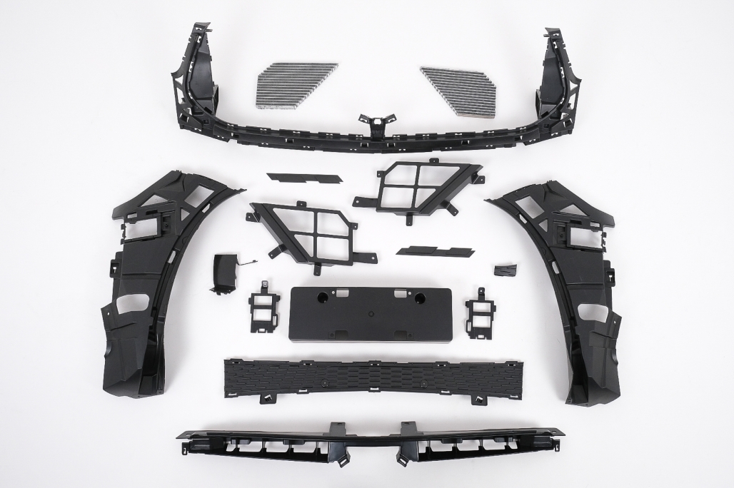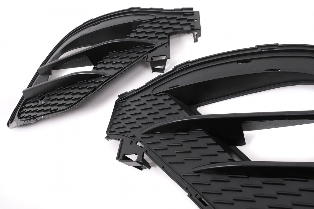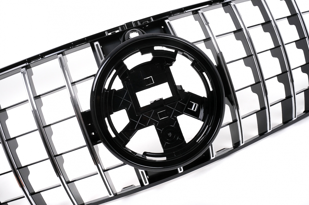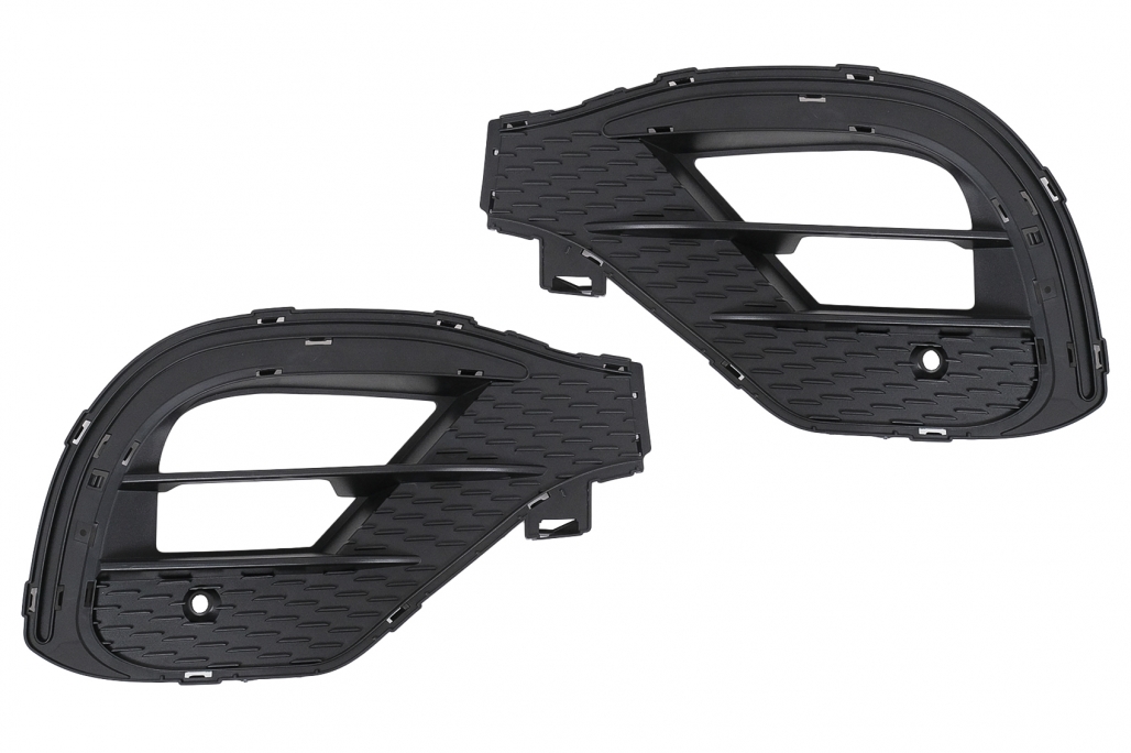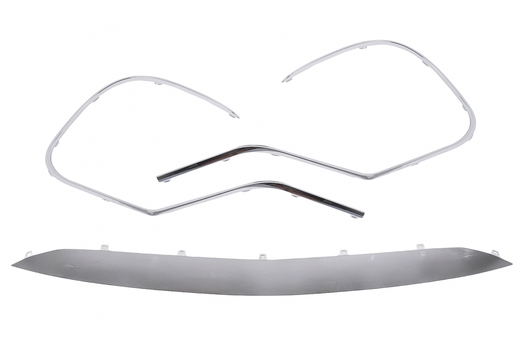 Bara fata echipata cu grila central-inferioara cromata, grile laterale cromate, suporturi PDC si spoiler de extensie a bari de protectie fata din aluminiu. Fabricata din PP (polipropilena) de inalta calitate Grila frontală M-Design Grila este realizată din plastic Cadru: cromat Benzi: cromate Prelungiri pentru aripi sunt fabricate din polipropilena de cea mai buna calitate Prelungirile pentru aripi sunt pregatite pentru procesul de vopsire.