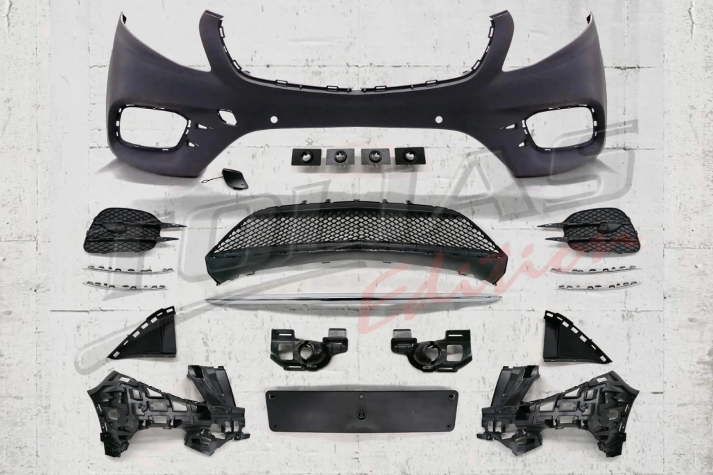 Bara Fata echipata cu grila centrala inferioara, grile laterale si ornament inferior. Bara este fabricata din polipropilena Bara este echipata cu suporti pentru PDC (senzori de parcare).