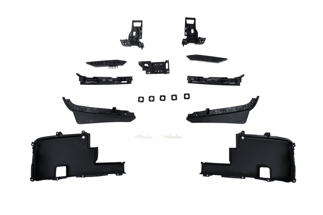 Produsul este realizat din materiale durabile, potrivite pentru utilizare indelungata, si vine echipat cu elementele esentiale pentru montajul estetic al partii frontale. Designul este inspirat de linia moderna 2024, oferind un plus de rafinament si prezenta pe sosea.