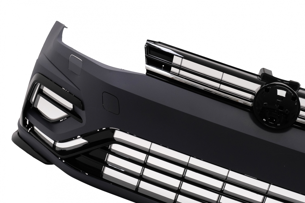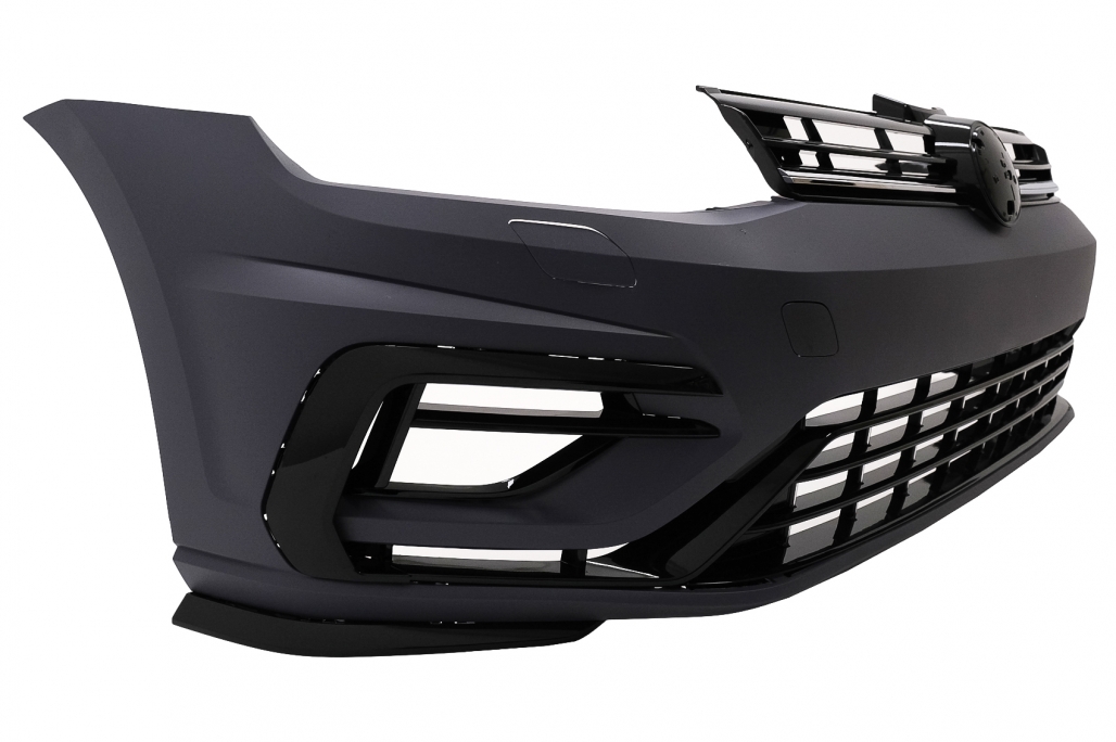 Bara fata Facelift R-Line Design Fabricata din polipropilena de cea mai buna calitate. Echipata cu grila centrala ,grilele laterale cu finisaj negru lucios, capacul pentru carligul de remorcare si capacele pentru sistemul de spalare al farurilor. Bara fata fara suporti pentru senzori de parcare (PDC)