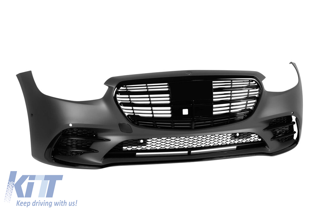 Bara frontală A Design Line potrivită pentru Mercedes S-Class W223 după 2020, cu grilă neagră Performance AutoTuning