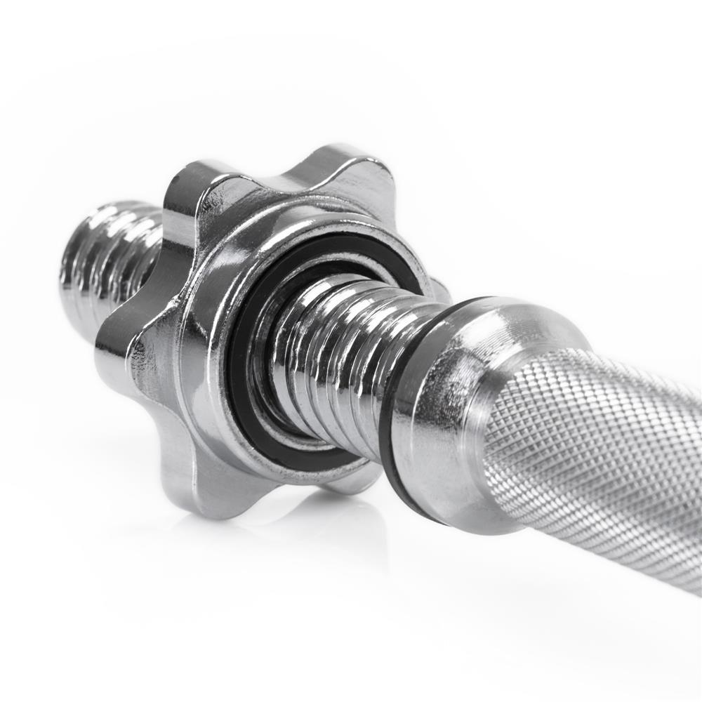Alege o bara gantera scurta practica si rezistenta pentru antrenamente eficiente acasa sau la sala. Realizata din otel cromat, aceasta bara de 36 cm ofera durabilitate, stabilitate si o prindere sigura datorita manerului texturat antiderapant. Este compatibila cu discuri de 28 mm si include coliere filetate pentru fixarea ferma a greutatilor in timpul exercitiilor.