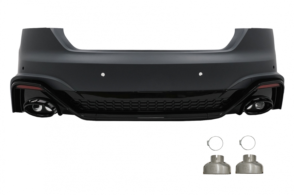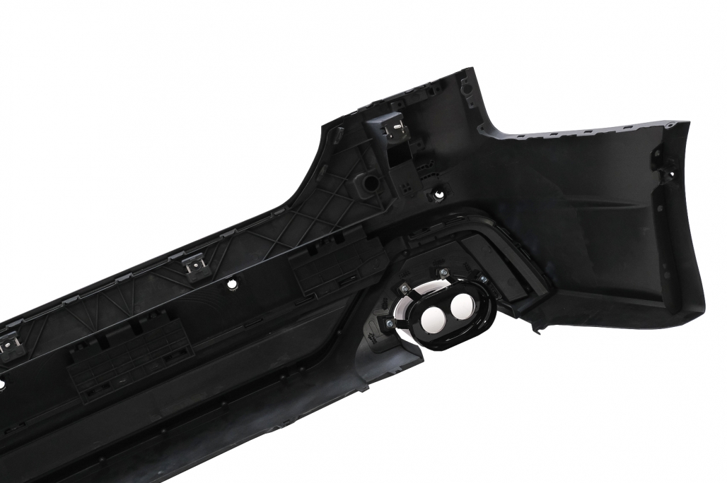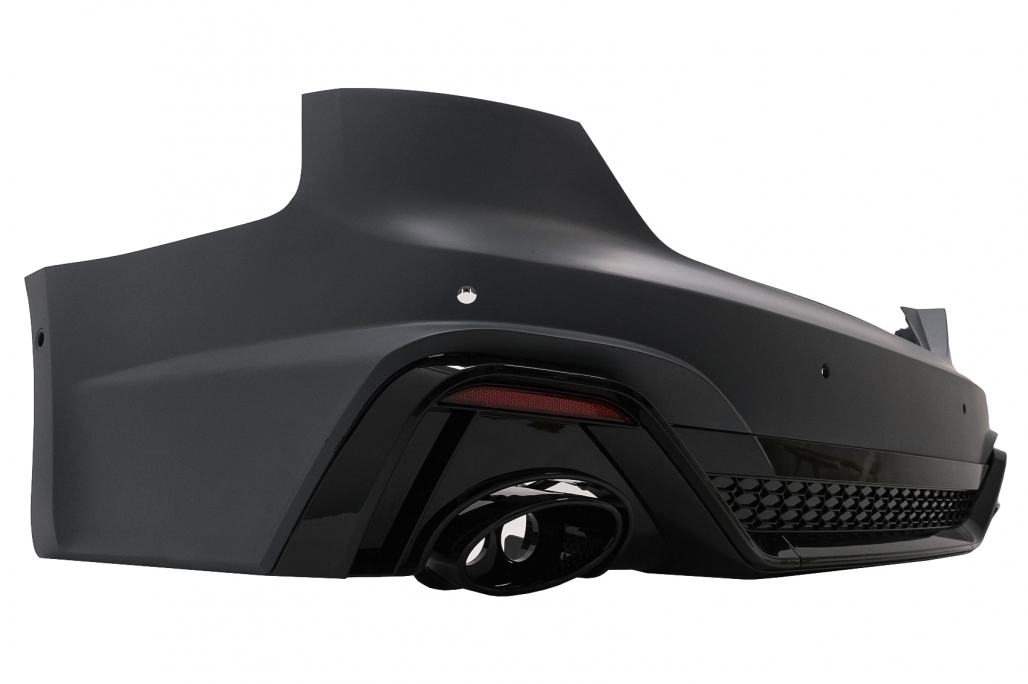 Bara Spate Racing Look Bara este fabricata din polipropilenade cea mai buna calitate. Echipata cu gauri si suporti pentru senzorii de parcare (PDC), capac pentru carligul de remorcare, difuzor pentru bara spate cu ornamente de evacuare Produsul neceista vopsire.