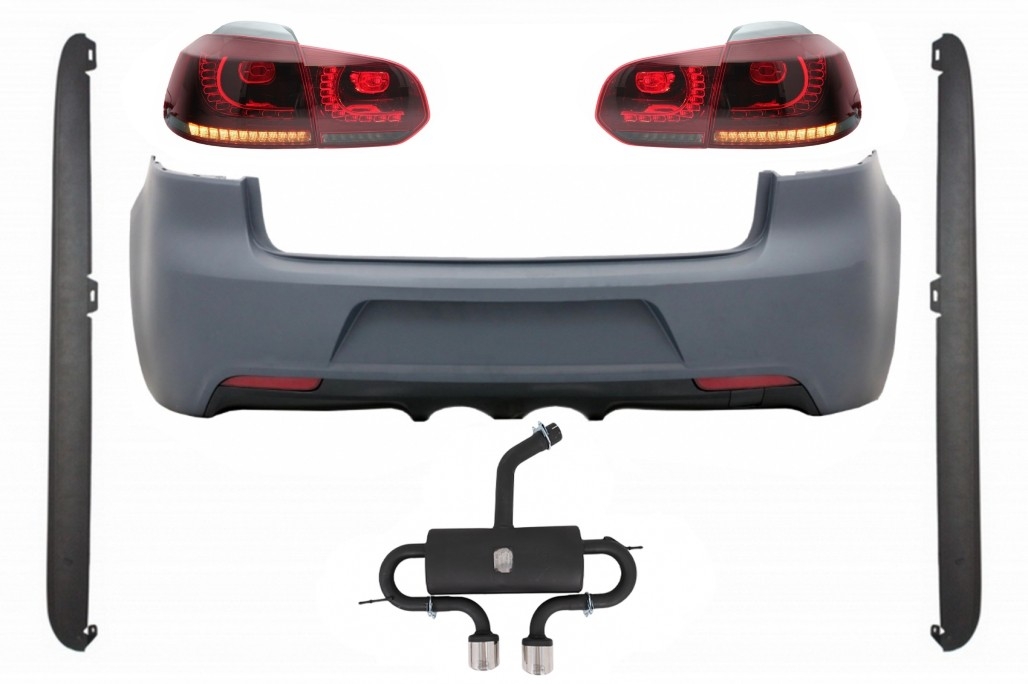 Bara Spate cu Sistem de Evacuare compatibil cu VW Golf 6 VI (2008-2013) Praguri Laterale si Stopuri Full LED Rosu Fumuriu R20 Look