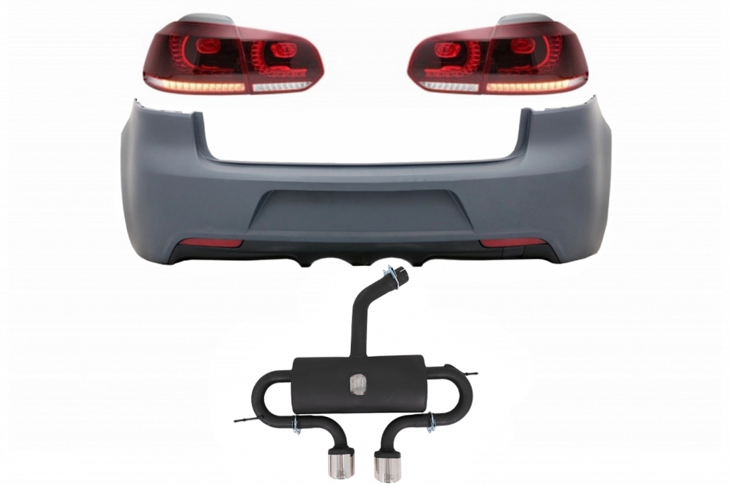 Bara spate VW Golf 6 VI R20 Look cu evacuare si stopuri Full LED, 2008-2013