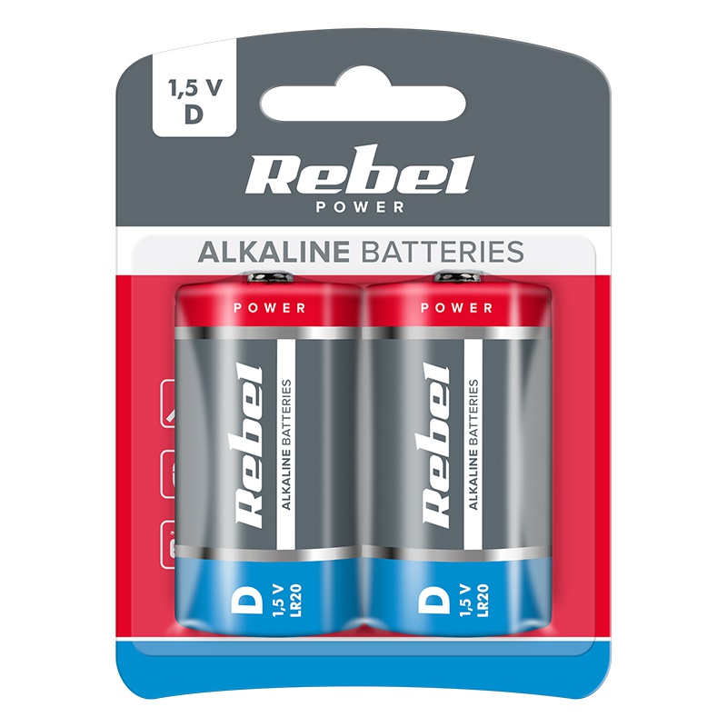 Baterie alcalina REBEL, marime D (R20), 1,5V.