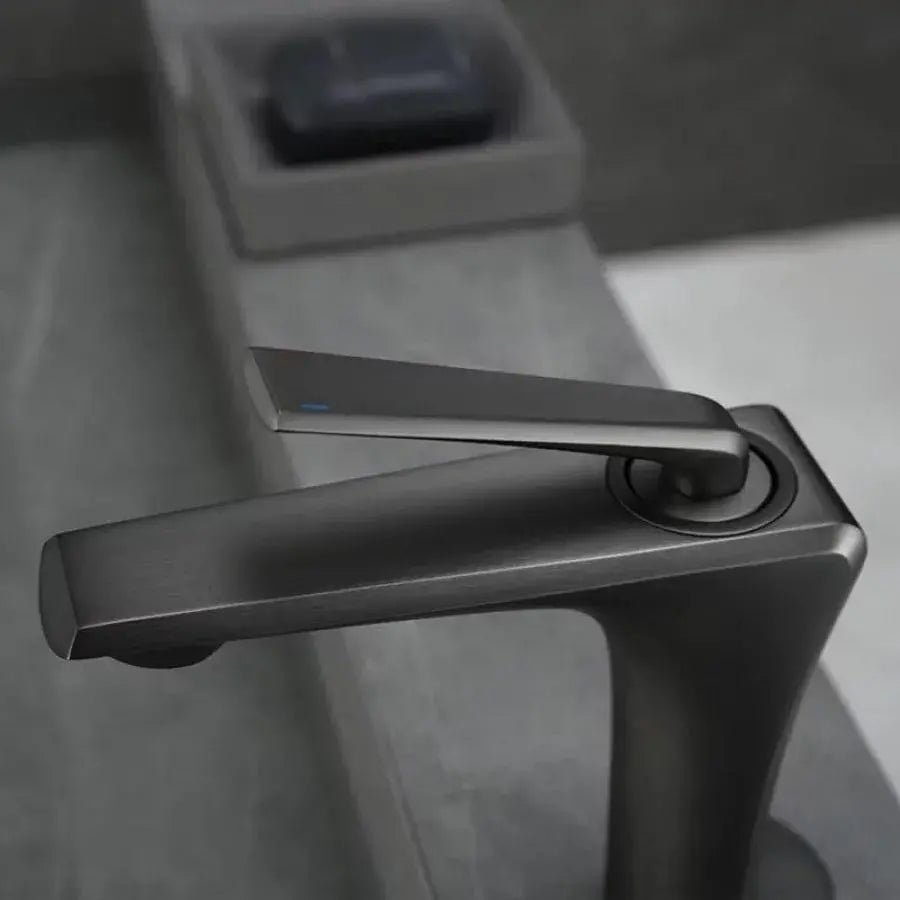 Transformă baia într-un spațiu modern cu această baterie de lavoar cu finisaj gun grey satinat. Construită din alamă sanitară, oferă rezistență în timp, un aspect premium și o utilizare confortabilă zi de zi.