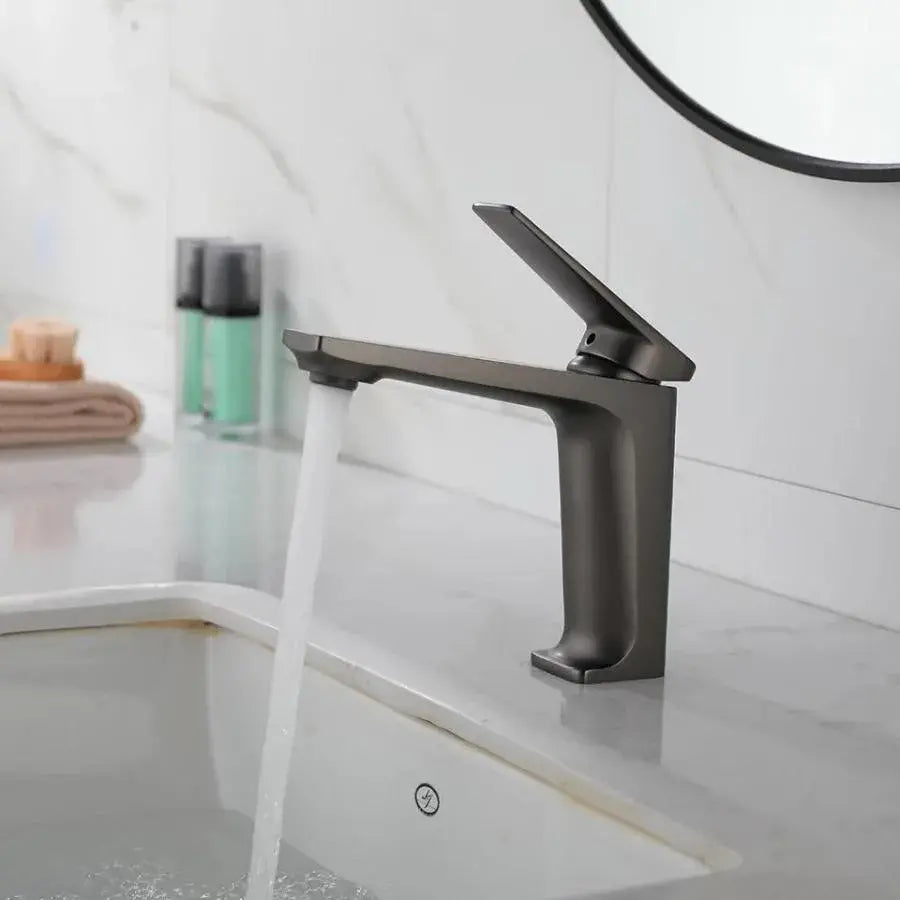 Adaugă un plus de stil băii tale cu această baterie lavoar în finisaj grafit (Gun Grey), realizată din alamă sanitară pentru durabilitate și aspect premium. Designul modern și maneta ergonomică îți oferă control ușor asupra debitului și temperaturii, ideal pentru utilizare zilnică.