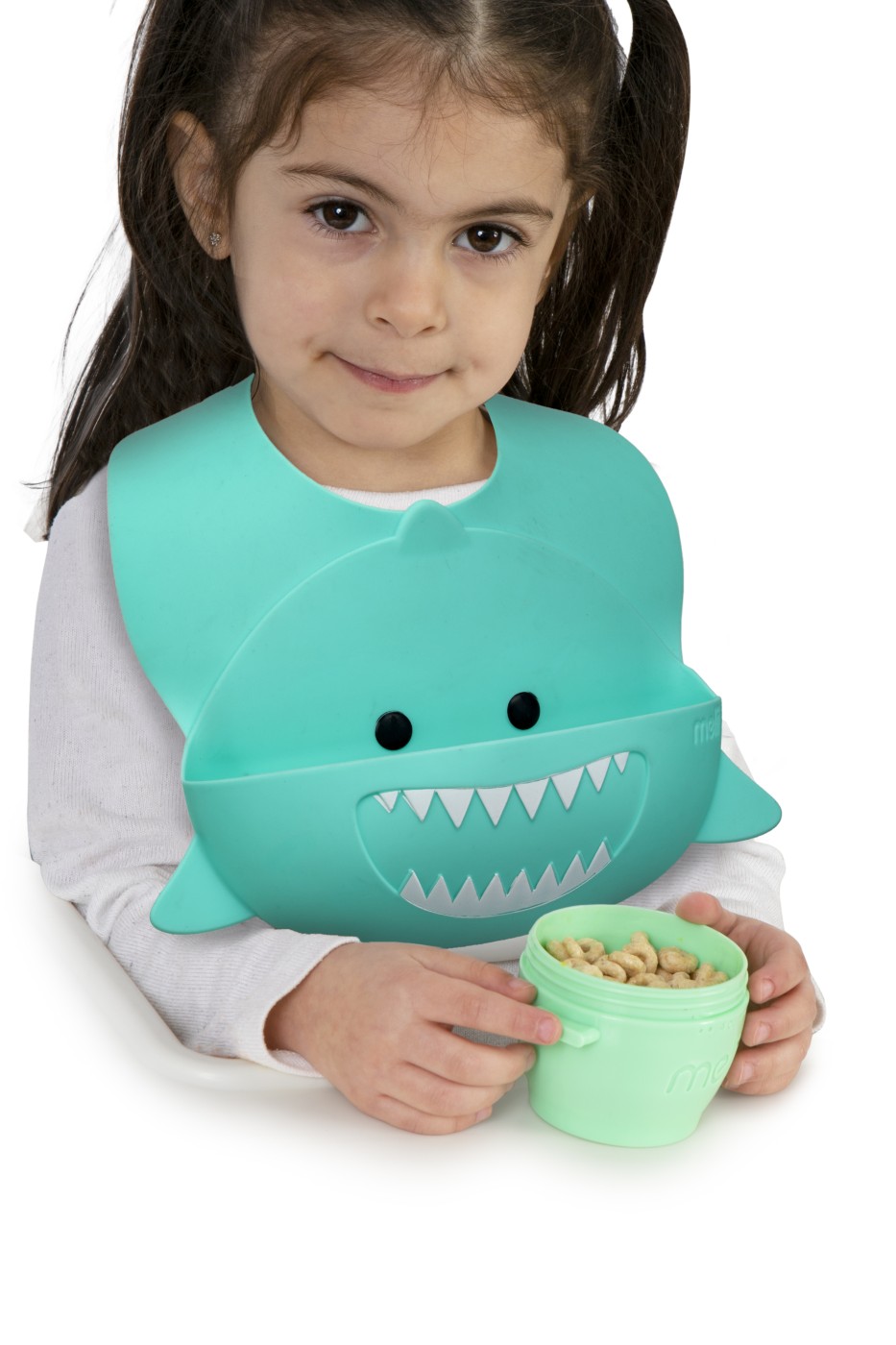 Fă timpul mesei mai simplu și mai vesel cu această bavetă din silicon pentru bebe de la Melii, în adorabilul model rechin. Realizată din 100% silicon alimentar, baveta este moale, flexibilă și confortabilă pentru cei mici, ajutând la protejarea hainelor împotriva petelor și resturilor de mâncare.