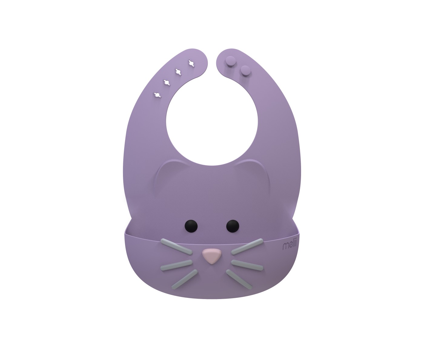 Fa mesele mai simple si mai curate cu aceasta baveta din silicon pentru bebelusi de la Melii, in adorabilul model pisica. Realizata din 100% silicon alimentar, baveta este moale, flexibila si confortabila pentru cei mici, ajutand la protejarea hainelor in timpul hranirii. Buzunarul frontal colecteaza resturile de mancare, iar sistemul de inchidere reglabil ofera o potrivire practica pe masura ce copilul creste.