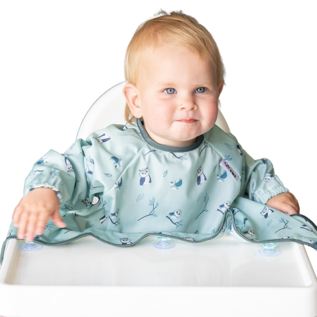 Baveta impermeabilă cu mâneci lungi și ventuze, model Bufnițe, este alegerea ideală pentru părinții care își doresc mai puțină mizerie la masă și mai multă libertate pentru cei mici. Concepută pentru bebeluși și copii între 6 și 24 de luni, această bavetă pentru diversificare oferă acoperire extinsă și protecție eficientă în timpul meselor, activităților creative sau jocului cu apă.