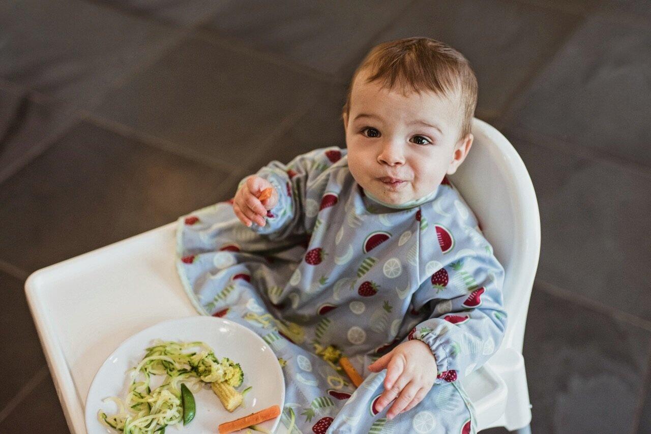 Baveta impermeabila cu maneci lungi si ventuze Tidy Tot, model Fructe, este alegerea practica pentru parintii care vor mai putina murdarie la masa si mai multa libertate pentru cei mici. Conceputa pentru bebelusi si copii intre 6 si 24 luni, aceasta baveta pentru diversificare ofera protectie extinsa a hainelor si sustine autonomia copilului in timpul meselor sau activitatilor creative.