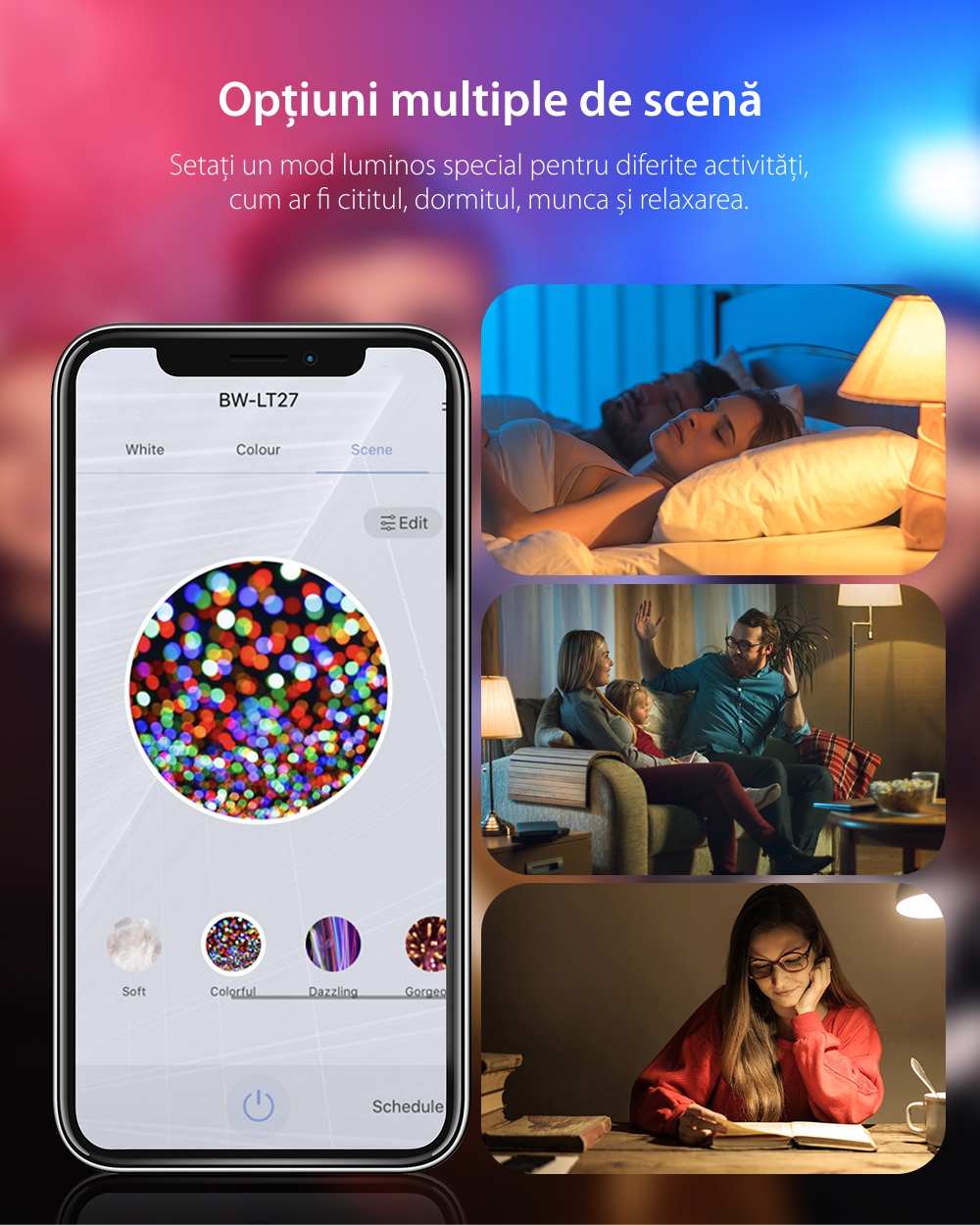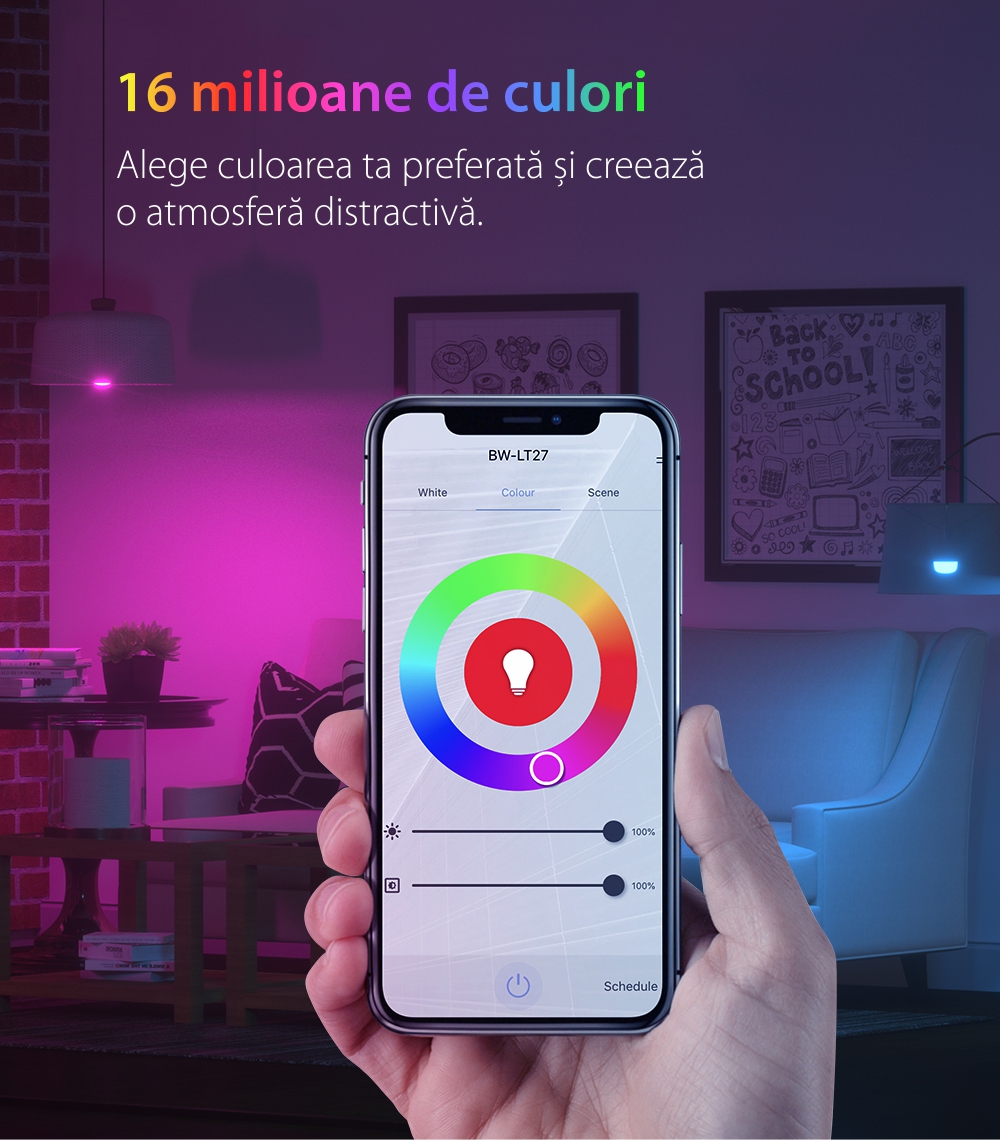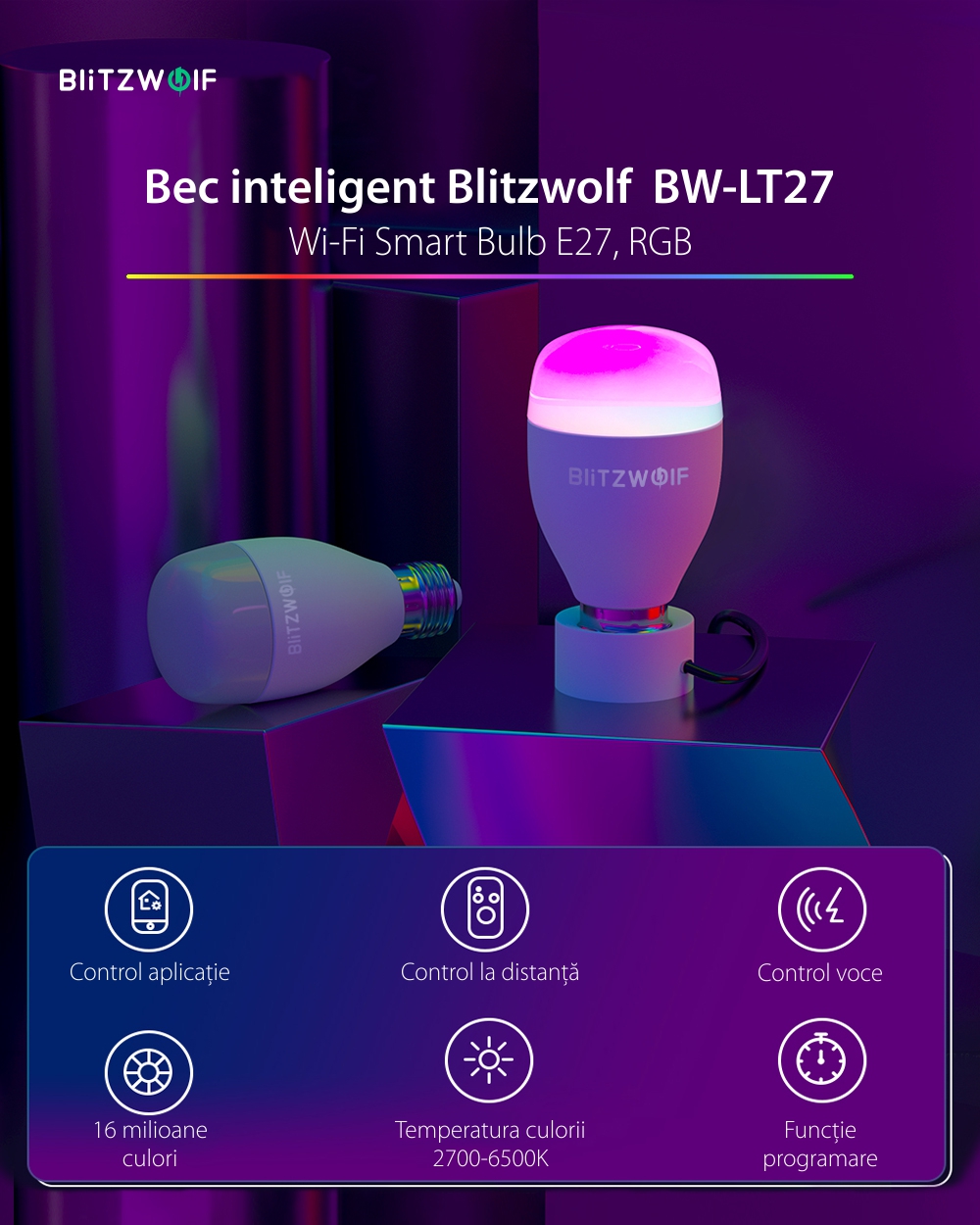 Bec inteligent Blitzwolf BW-LT27, Wi-Fi, Smart, Bulb E27, 9W, Comanda vocala, 850 LM, RGB SmartElectro IntelligentHouse