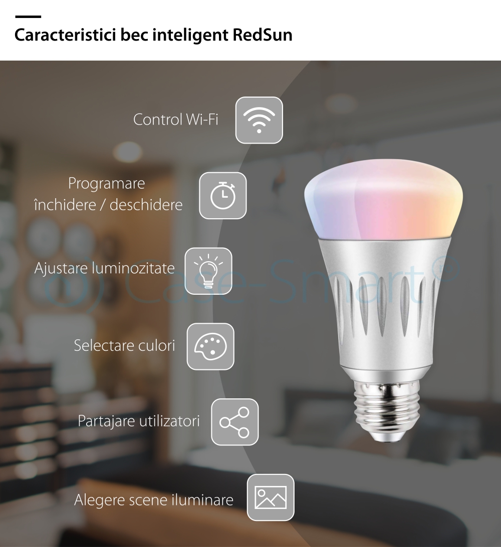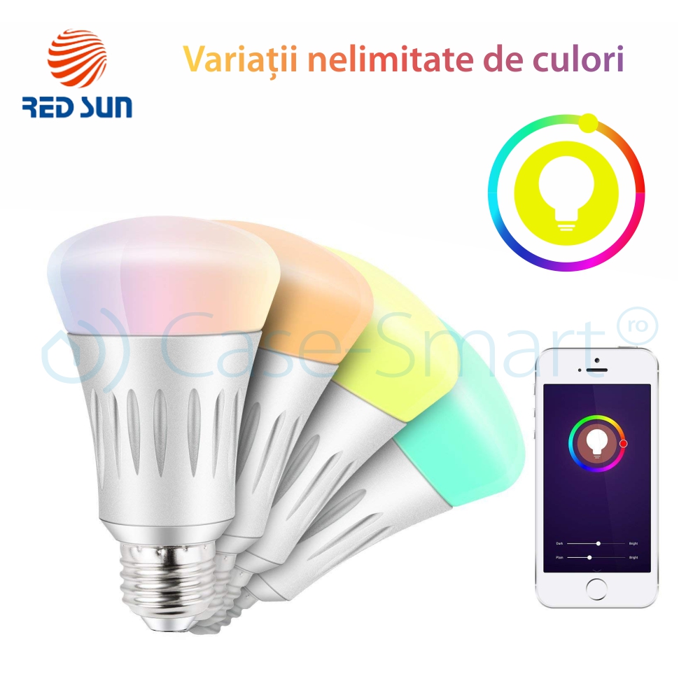 Bec inteligent LED RGB wifi rotund Red Sun, control de pe aplicatie mobila - RS-SLD02-E27 SmartElectro IntelligentHouse