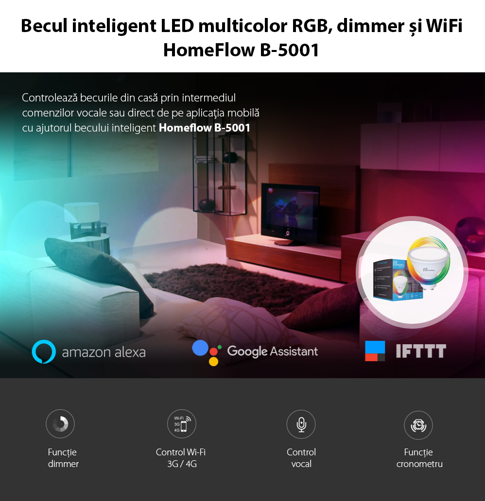 Descriere Bec inteligent LED Wireless Homeflow B-5001,