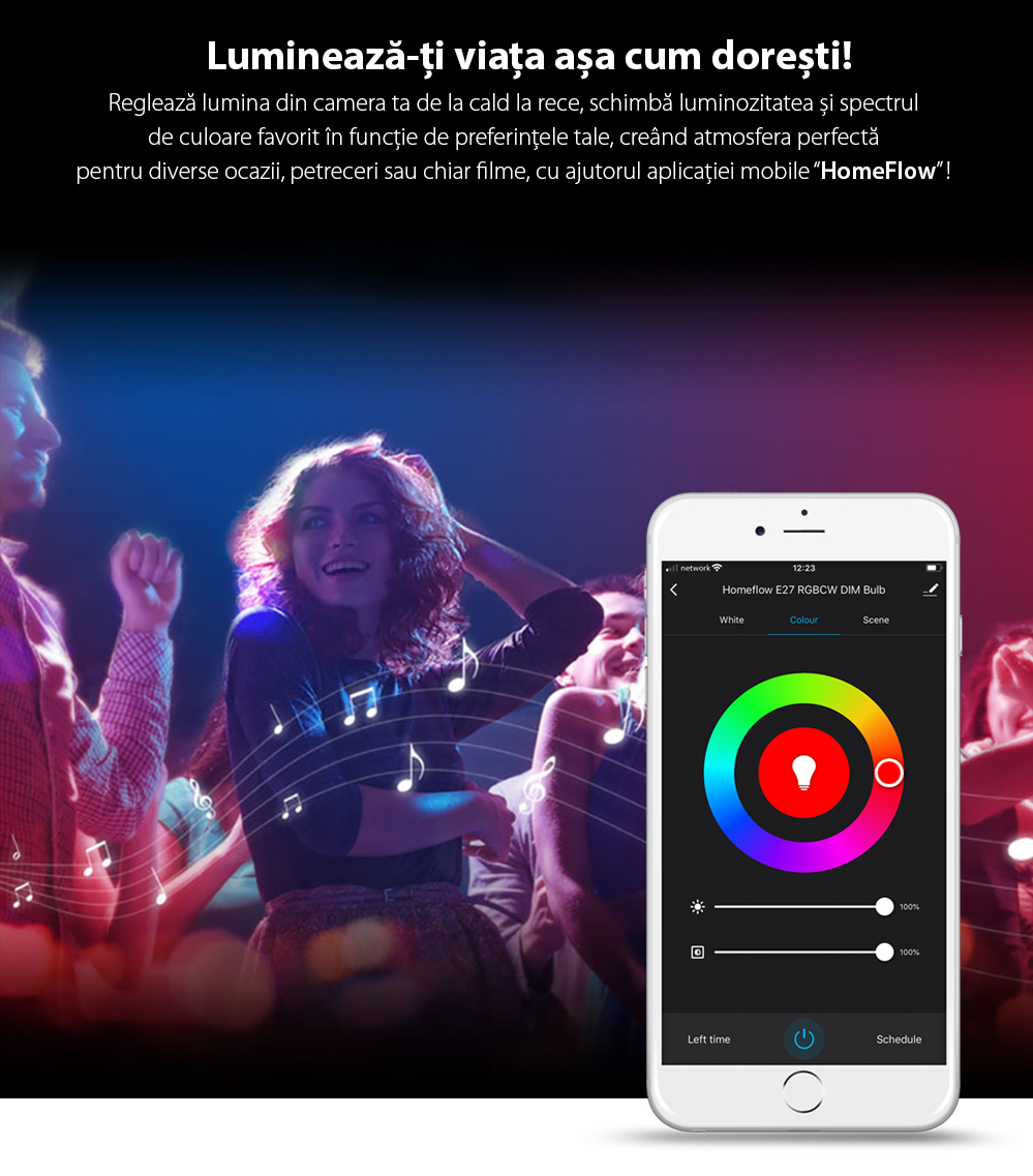 Bec inteligent LED Wireless Homeflow B-5006, B22, 9W (60W), 806lm, RGB, dimabil, Control de pe telefonul mobil SmartElectro IntelligentHouse