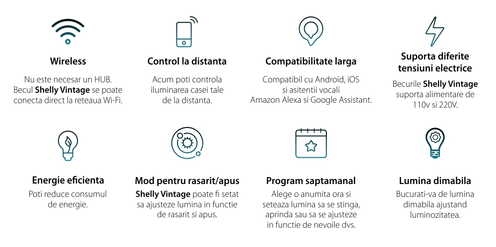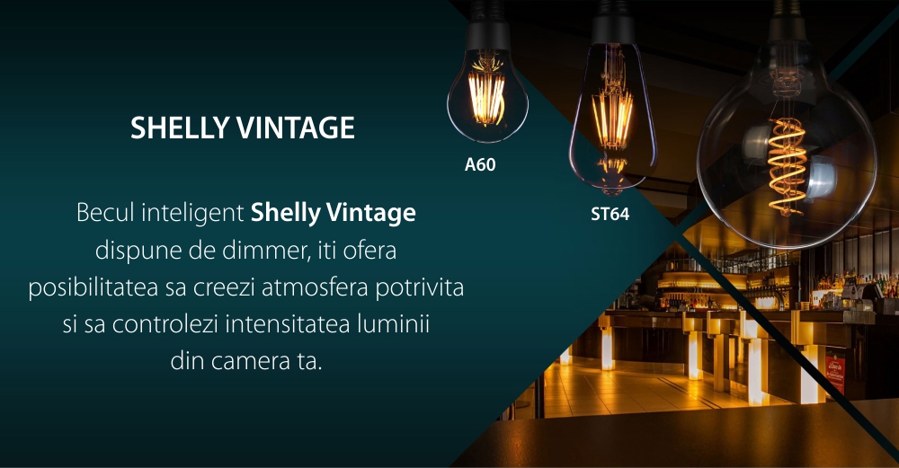 Descriere Bec inteligent Shelly Vintage ST64, Dimmer,
