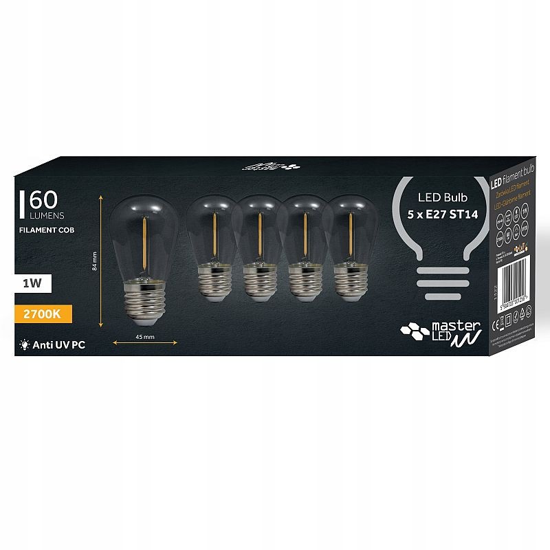Bec led cob, pentru ghirlande luminoase, e27, alb cald, 1w, 60 lm, set 5 bucati MultiMark GlobalProd
