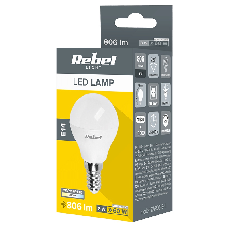 Descriere BEC LED G45 E14 8W 3000K