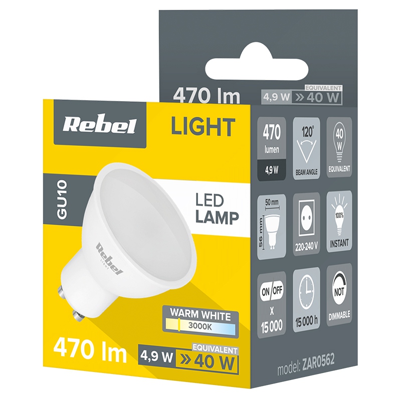 Specificatii BEC LED GU10 5W 230V 3000K