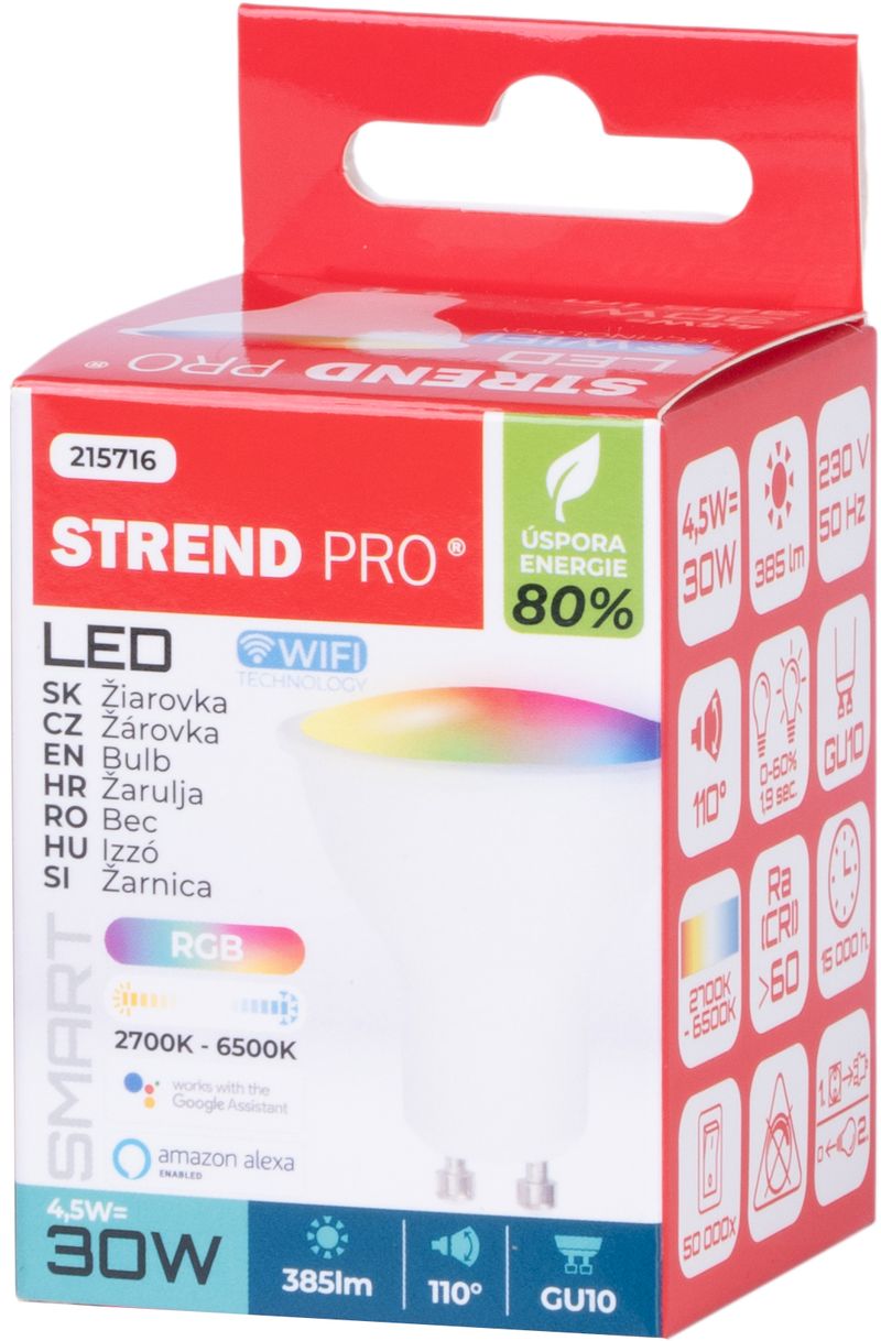 Becul LED inteligent Strend Pro Smart GU10 WiFi RGB 5W este alegerea ideală pentru un iluminat modern, confortabil și ușor de personalizat. Controlezi rapid lumina din telefon, schimbi culorile, reglezi intensitatea și alegi temperatura potrivită pentru fiecare moment al zilei.