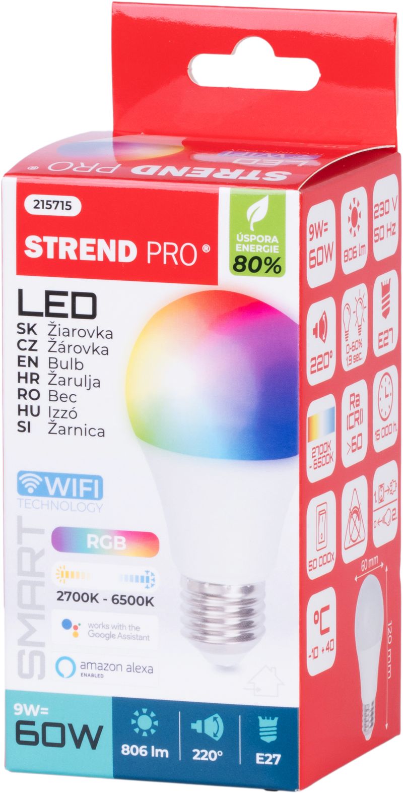 Bec LED inteligent WiFi RGB Strend Pro E27, 9W, lumină reglabilă