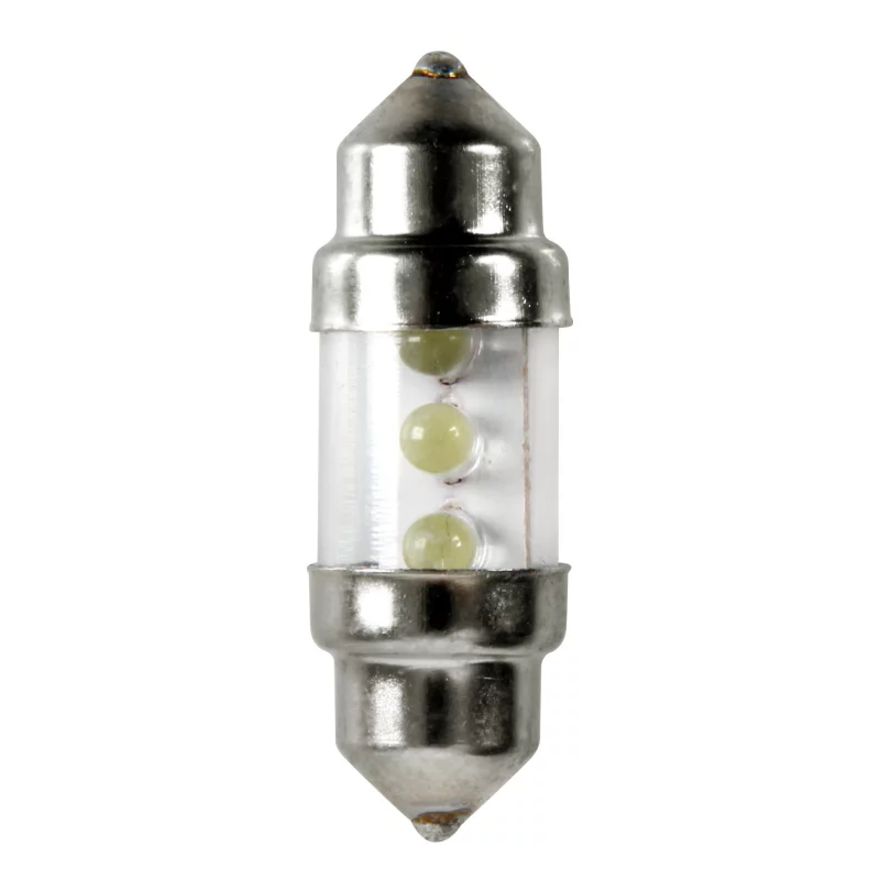 Bec LED sofit 12V 10x31mm cu 3 LED-uri, SV8.5-8, curcubeu, set 2 buc