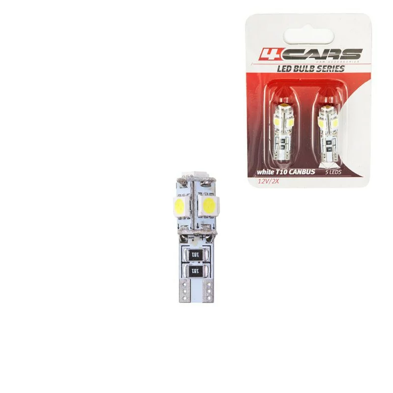 Alege acest bec LED T10 Canbus 12V de la 4Cars pentru un plus de claritate si un aspect modern in habitaclul masinii. Cu lumina alb rece si constructie cu 5 SMD, produsul este potrivit pentru iluminare interioara, oferind consum redus si montaj facil. Rezistorul incorporat cu sistem CANBUS ajuta la anularea erorilor pe vehiculele compatibile.