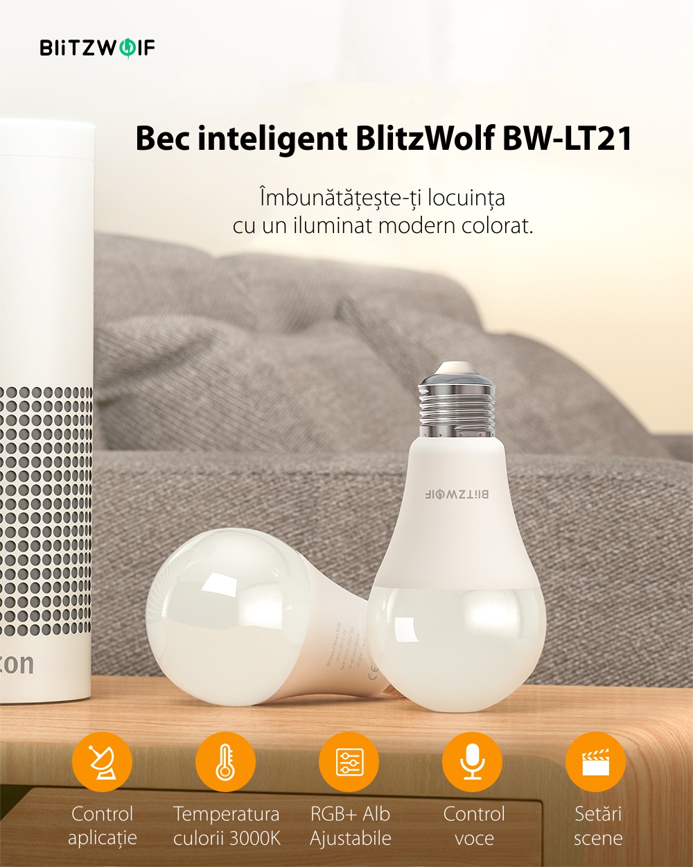 Specificatii Bec Smart LED RGB, BlitzWolf BW-LT21,