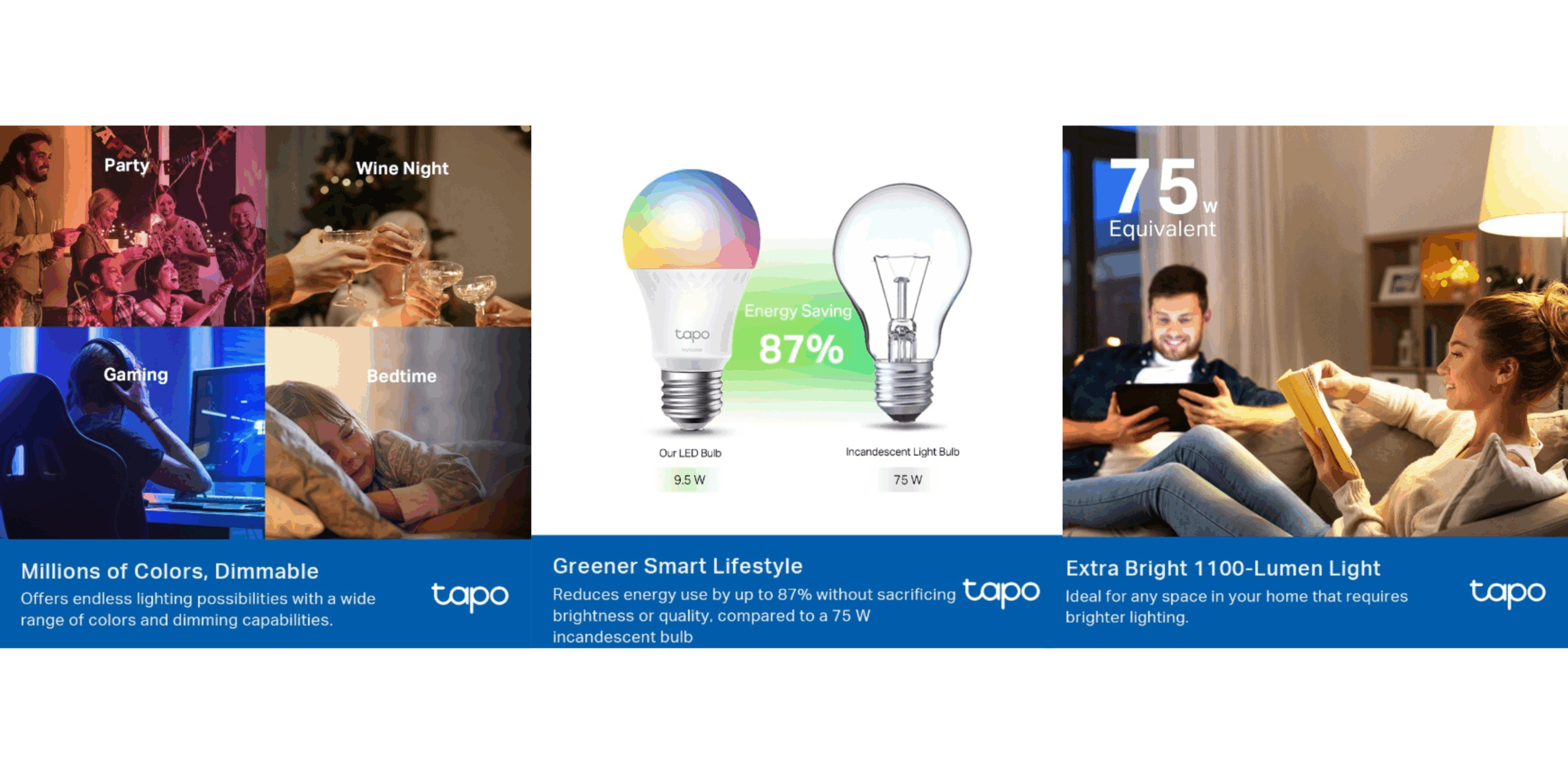 Bec smart Wi-Fi, RGB, intensitate ajustabila, 2500-6500K, 1055 lm, E27 - TP-Link Tapo TapoL535E SafetyGuard Surveillance