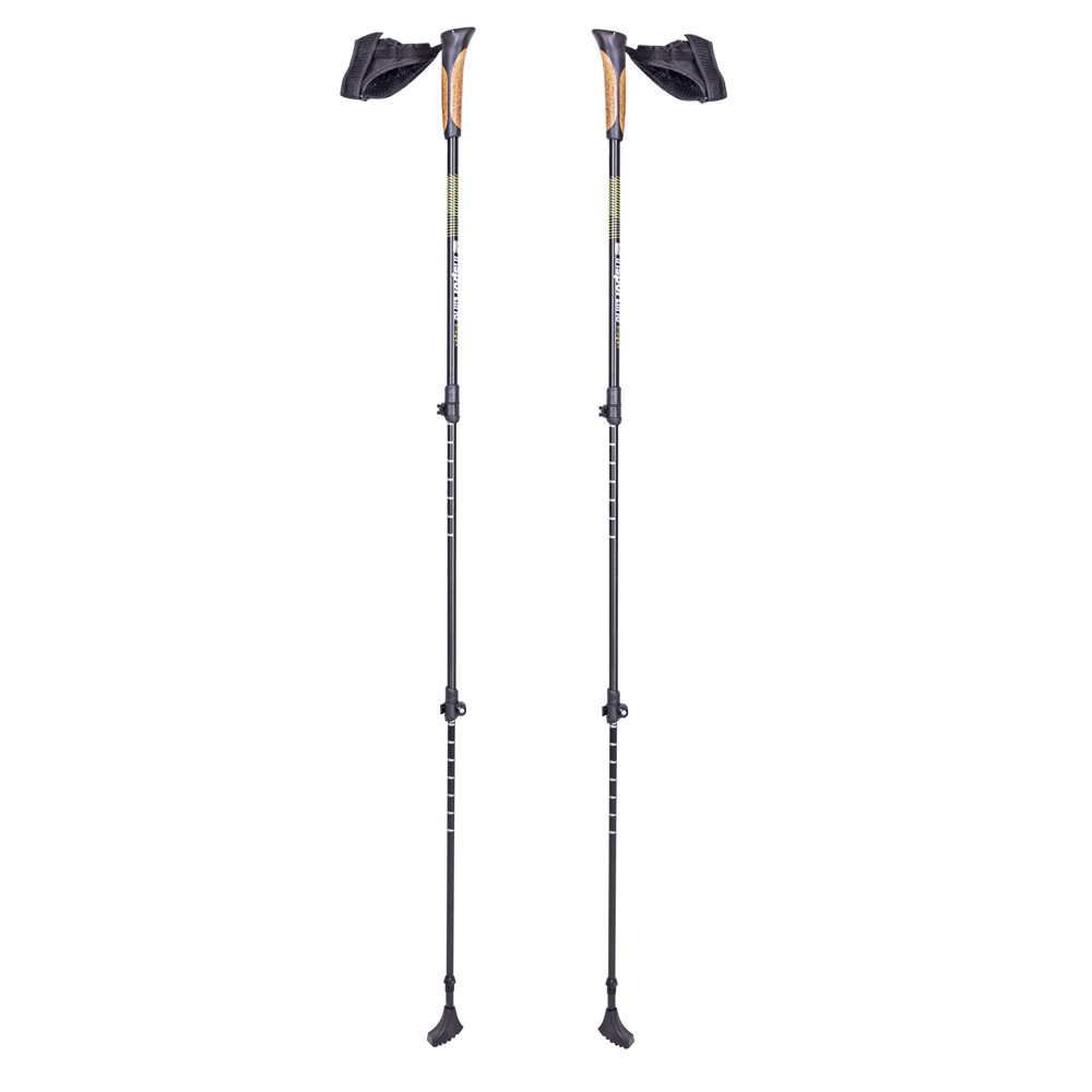 Manerele confortabile de pluta asigura o prindere ferma si tin transpiratia departe de palmele dvs. Dimensiunea benzii Velcro detasabile se poate ajusta foarte usor. Betele sunt dotate cu varf de otel si picioruse Nordic walking, capete cauciucate de schimb si 2 perechi capete de trekking (una pentru suprafata moale si alta pentru suprafata libera).