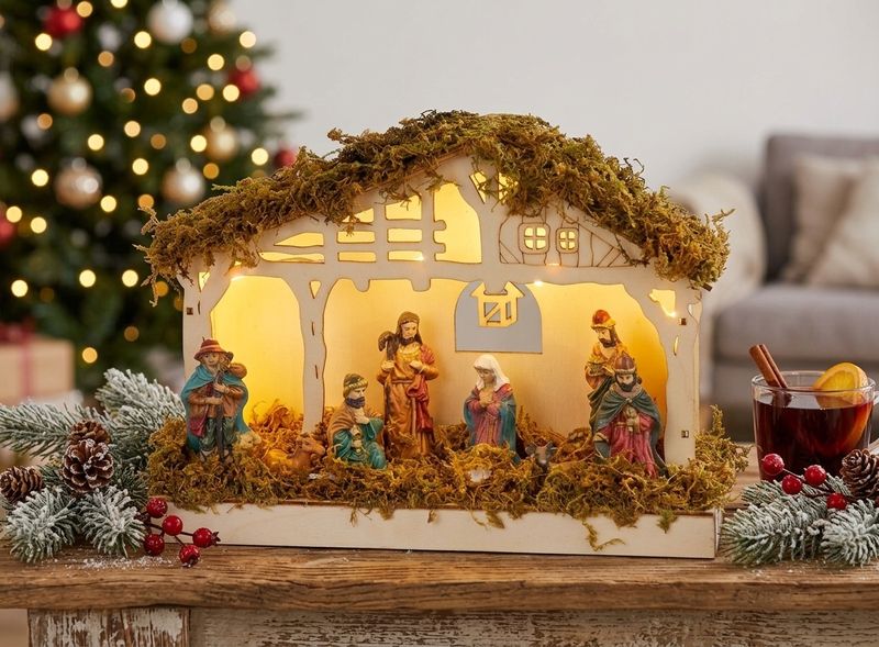 - design cu scenă de betleem, potrivit pentru decorul tradițional de Crăciun;